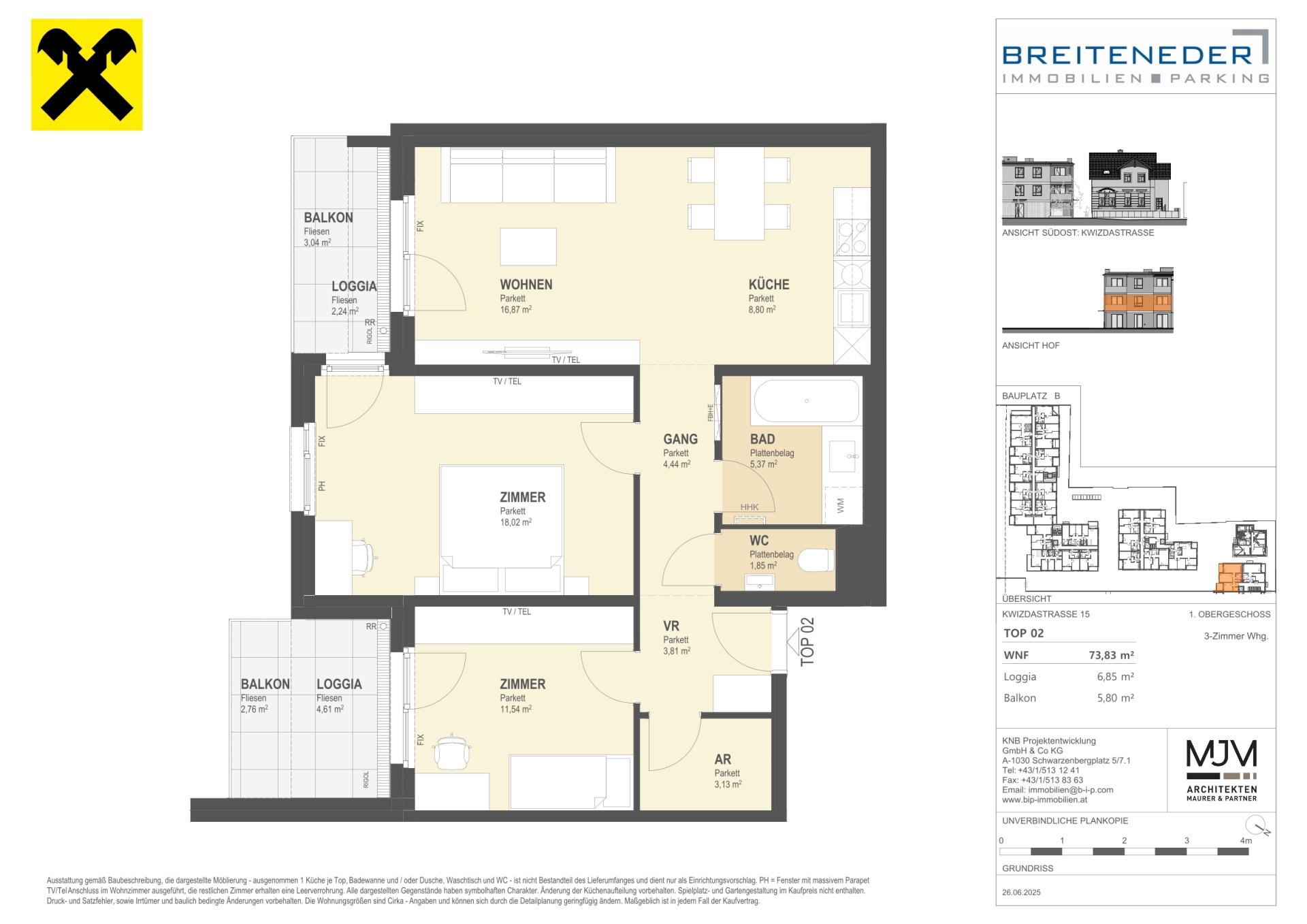 Kostentransparenz : Die ausgewiesenen Preise verstehen sich als Bruttokaufpreise inklusive aller gesetzlichen Nebenkosten. Dazu zählen 3,5% Grunderwerbsteuer und 1,1% Grundbucheintragungsgebühr vom Gesamt-Kaufpreis sowie das Treuhandentgelt inklusive Vertragserrichtungsentgelt in Höhe von 1,5% vom Gesamt-Kaufpreis (zzgl. USt und Barauslagen). Für den Hauptwohnsitzerwerb in einem neu erworbenen Eigenheim entfallen von Juli 2024 bis Juli 2026 die Grundbuch- und Pfandrechtseintragungsgebühren bis zu einem Wert von 500.000 Euro (für übersteigende Beträge ist die Gebühr zu entrichten).