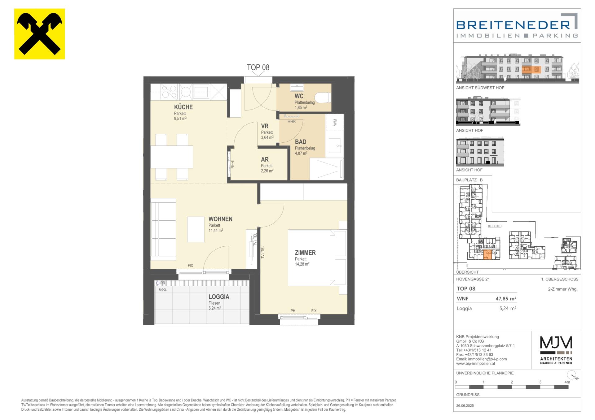 Die Preise verstehen sich als Nettokaufpreise zzgl. USt. Hinzu kommen 3,5 % Grunderwerbsteuer, 1,1 % Grundbucheintragungsgebühr sowie ein Treuhand- und Vertragserrichtungsentgelt von 1,5 % des Gesamtkaufpreises (zzgl. USt und Barauslagen).