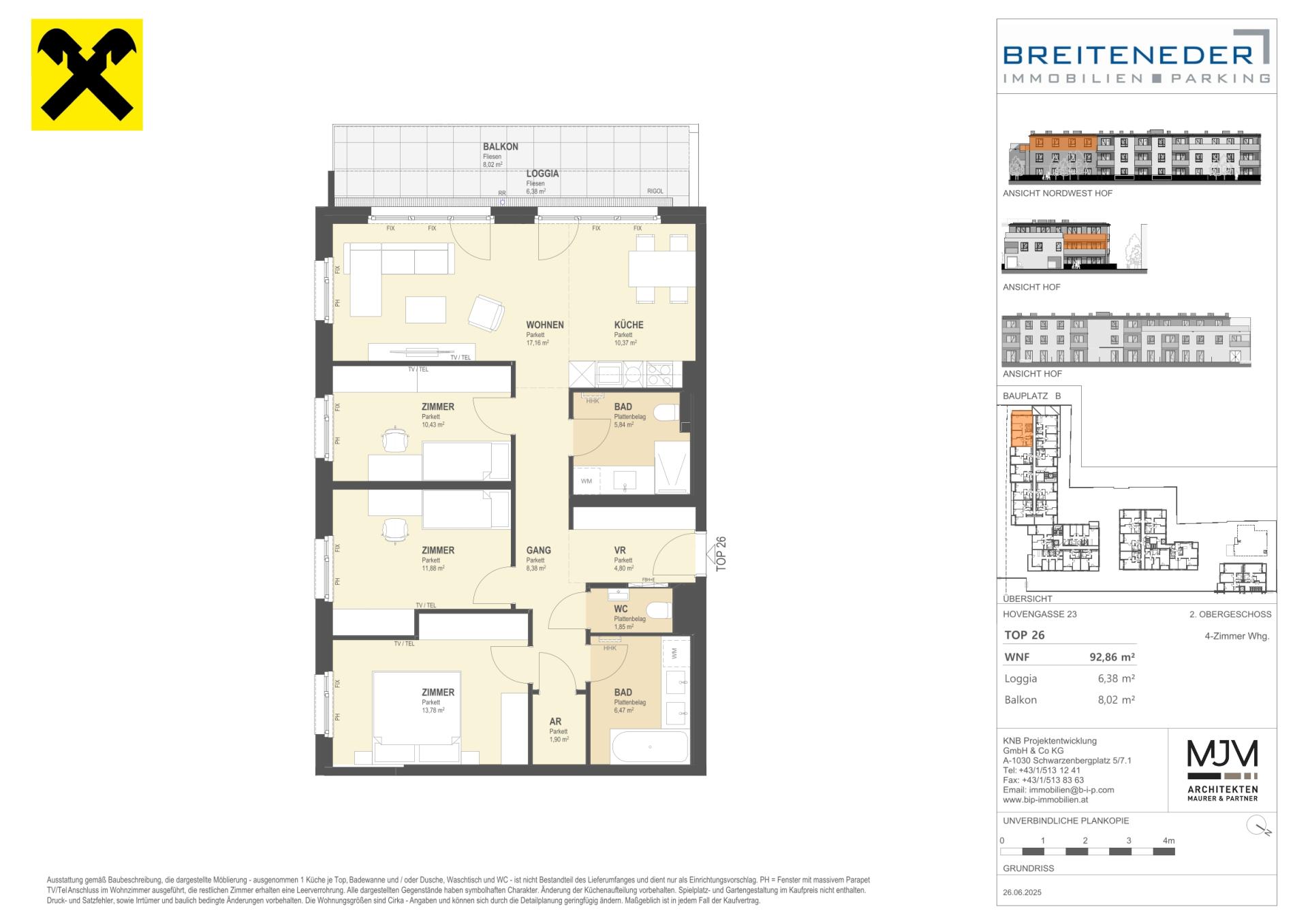 Kostentransparenz: Die ausgewiesenen Preise verstehen sich als Bruttokaufpreise inklusive aller gesetzlichen Nebenkosten. Dazu zählen 3,5% Grunderwerbsteuer und 1,1% Grundbucheintragungsgebühr vom Gesamt-Kaufpreis sowie das Treuhandentgelt inklusive Vertragserrichtungsentgelt in Höhe von 1,5% vom Gesamt-Kaufpreis (zzgl. USt und Barauslagen). Für den Hauptwohnsitzerwerb in einem neu erworbenen Eigenheim entfallen von Juli 2024 bis Juli 2026 die Grundbuch- und Pfandrechtseintragungsgebühren bis zu einem Wert von 500.000 Euro (für übersteigende Beträge ist die Gebühr zu entrichten).