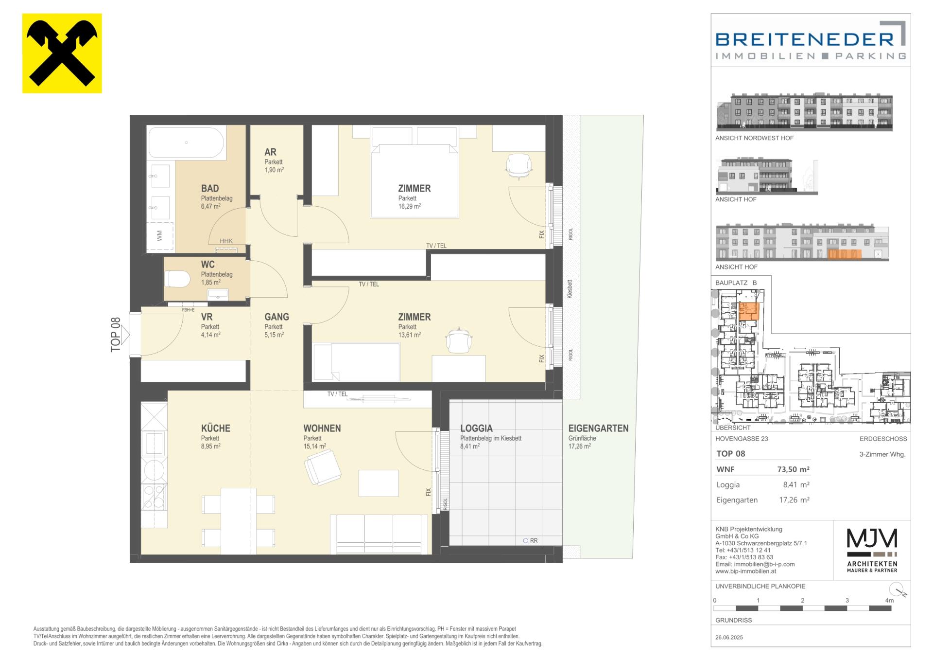 Die Preise verstehen sich als Nettokaufpreise zzgl. USt. Hinzu kommen 3,5 % Grunderwerbsteuer, 1,1 % Grundbucheintragungsgebühr sowie ein Treuhand- und Vertragserrichtungsentgelt von 1,5 % des Gesamtkaufpreises (zzgl. USt und Barauslagen).