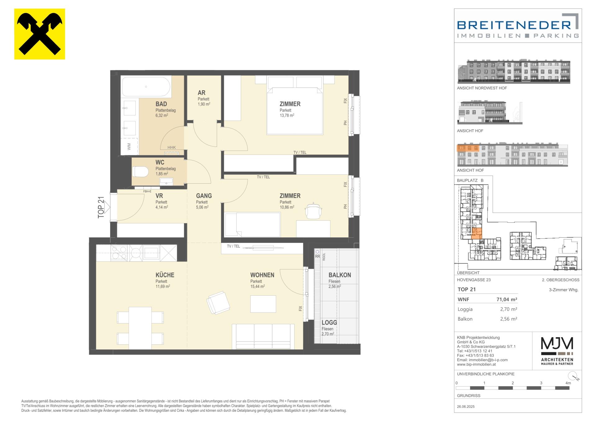 Kostentransparenz : Die ausgewiesenen Preise verstehen sich als Gesamtfixkaufpreise exklusive aller gesetzlichen Nebenkosten. Dazu zählen 3,5% Grunderwerbsteuer und 1,1% Grundbucheintragungsgebühr vom Gesamt-Kaufpreis sowie das Treuhandentgelt inklusive Vertragserrichtungsentgelt in Höhe von 1,5% vom Gesamt-Kaufpreis (zzgl. USt und Barauslagen). Für den Hauptwohnsitzerwerb in einem neu erworbenen Eigenheim entfallen von Juli 2024 bis Juli 2026 die Grundbuch- und Pfandrechtseintragungsgebühren bis zu einem Wert von 500.000 Euro (für übersteigende Beträge ist die Gebühr zu entrichten).