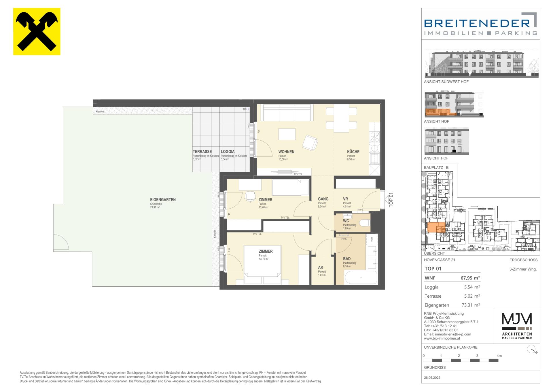 Die Preise verstehen sich als Nettokaufpreise zzgl. USt. Hinzu kommen 3,5 % Grunderwerbsteuer, 1,1 % Grundbucheintragungsgebühr sowie ein Treuhand- und Vertragserrichtungsentgelt von 1,5 % des Gesamtkaufpreises (zzgl. USt und Barauslagen).