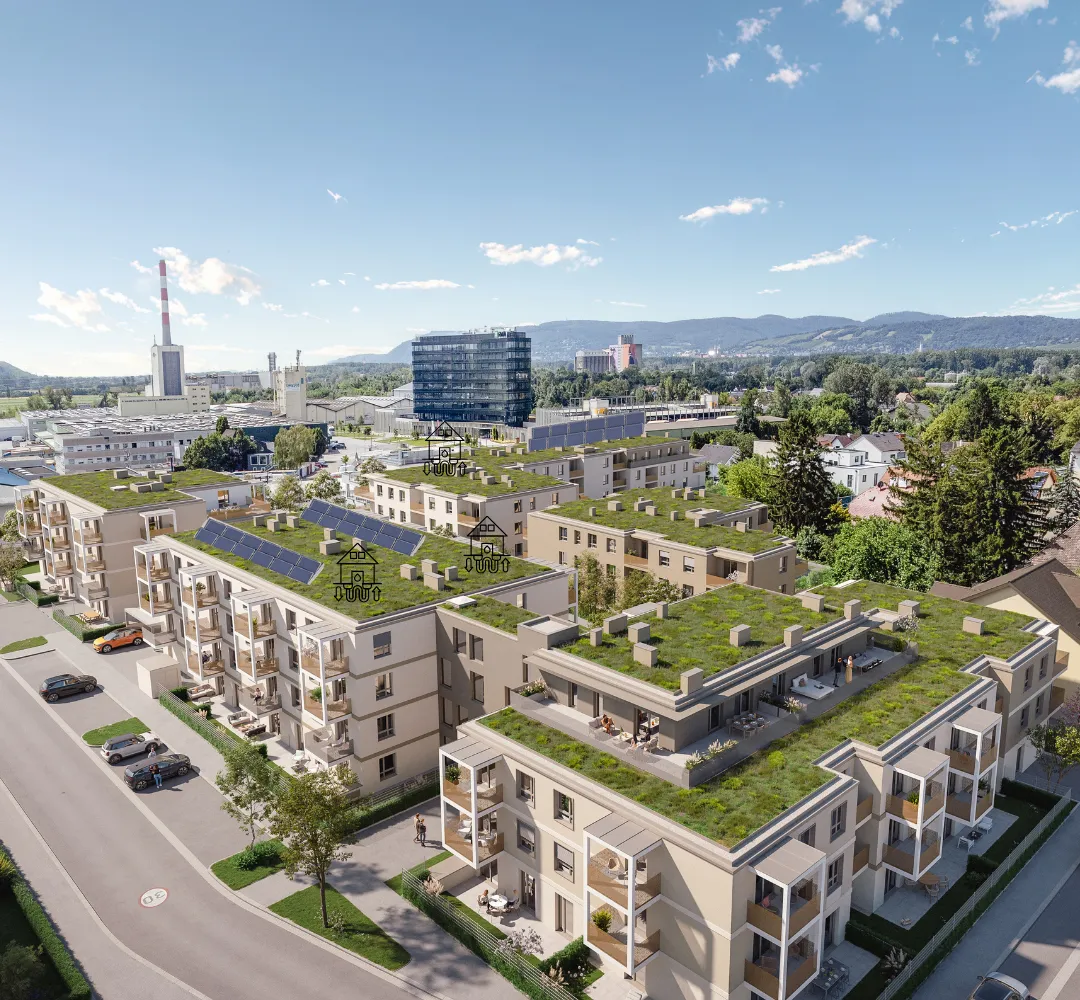 Das Projekt umfasst 135 Vorsorge- und Eigentumswohnungen mit 1–5 Zimmern und Wohnflächen zwischen 40 und 112 m². Auch eine Villa kann erworben werden. Jede Einheit verfügt über eine private Freifläche (Balkon, Loggia, Terrasse oder Garten) und eine zeitgemäße Grundrissgestaltung, die perfekt auf die Wohnbedürfnisse jetziger und zukünftiger Mieter: innen abgestimmt ist.