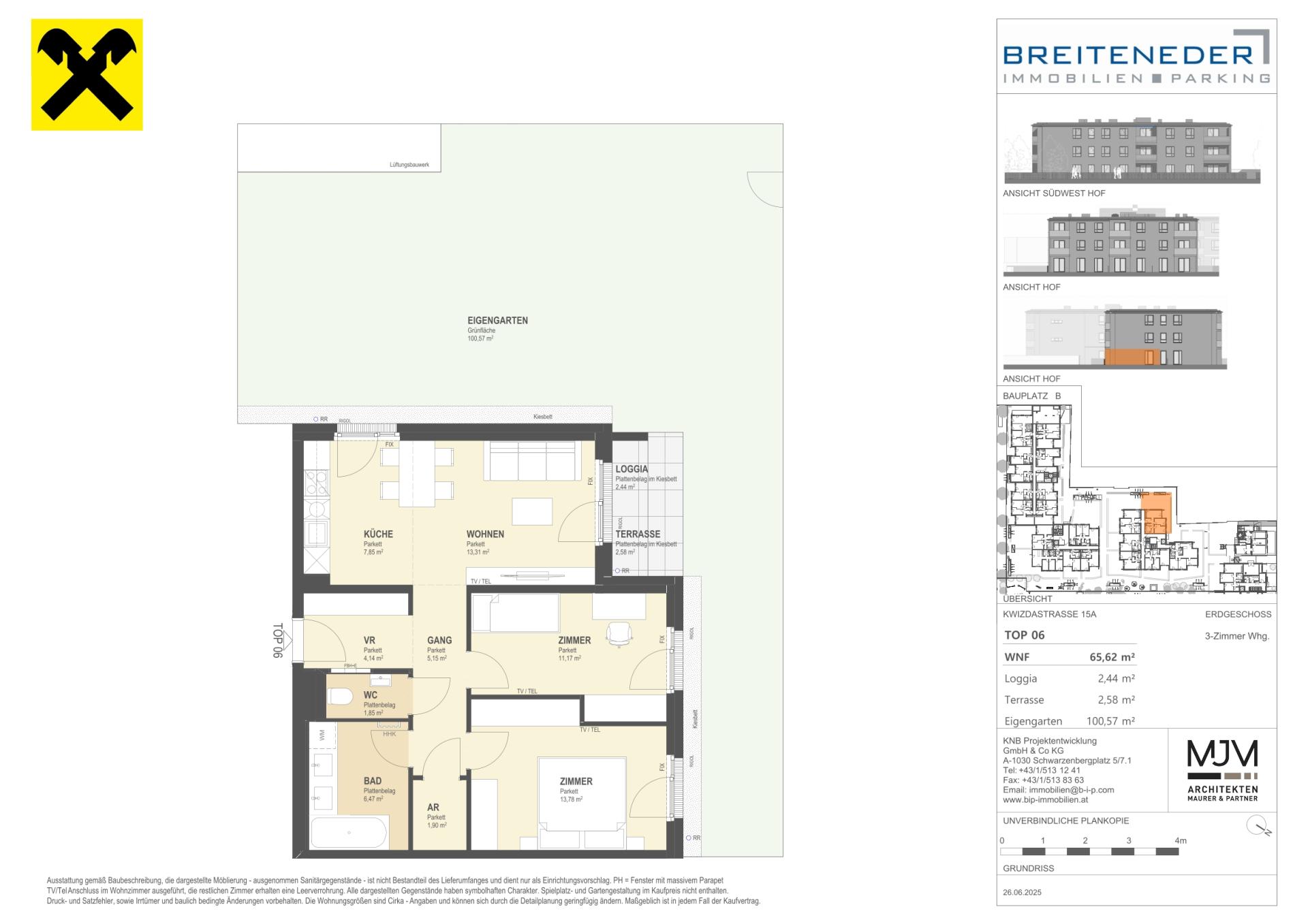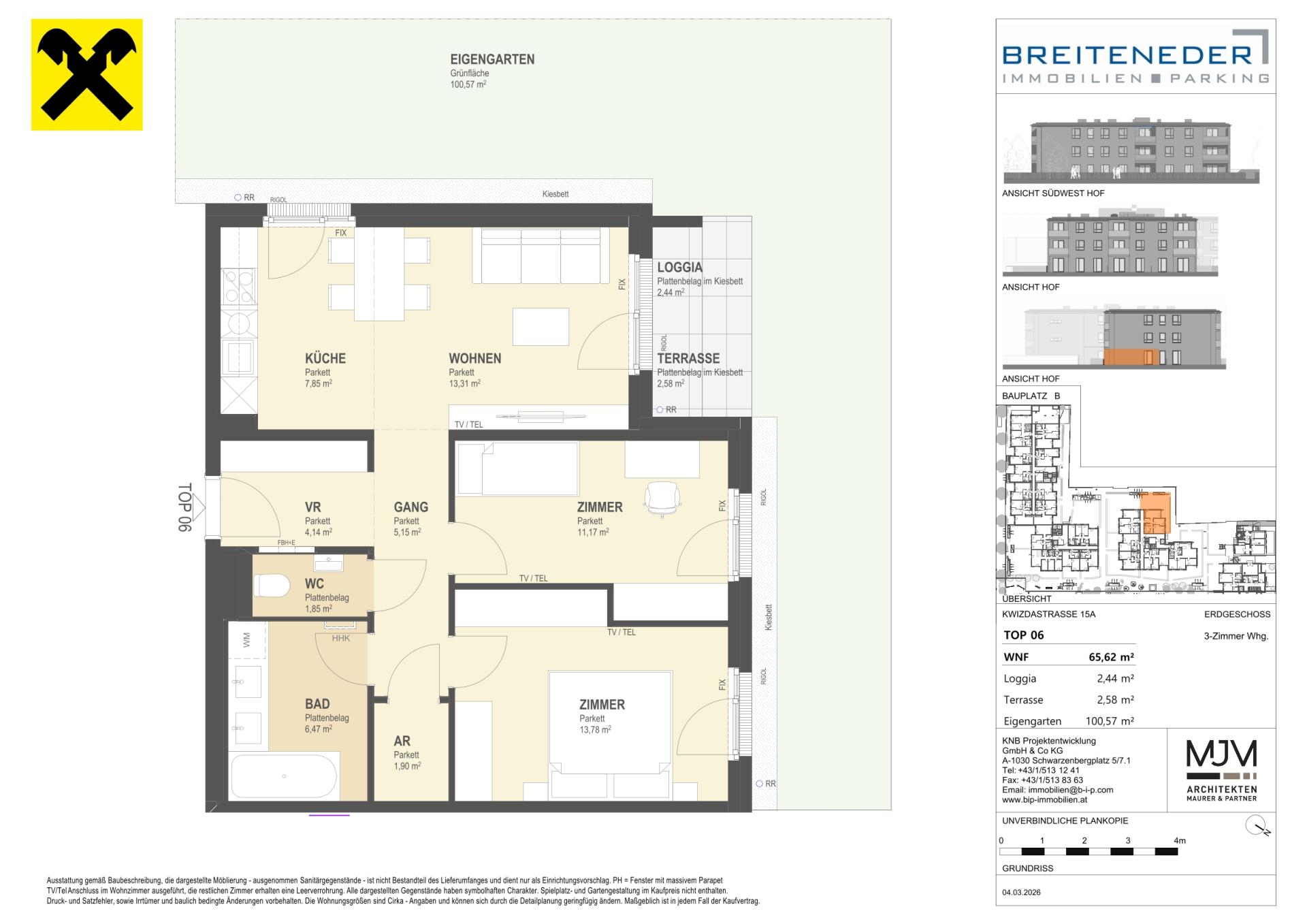 Die Preise verstehen sich als Nettokaufpreise zzgl. USt. Hinzu kommen 3,5 % Grunderwerbsteuer, 1,1 % Grundbucheintragungsgebühr sowie ein Treuhand- und Vertragserrichtungsentgelt von 1,5 % des Gesamtkaufpreises (zzgl. USt und Barauslagen).