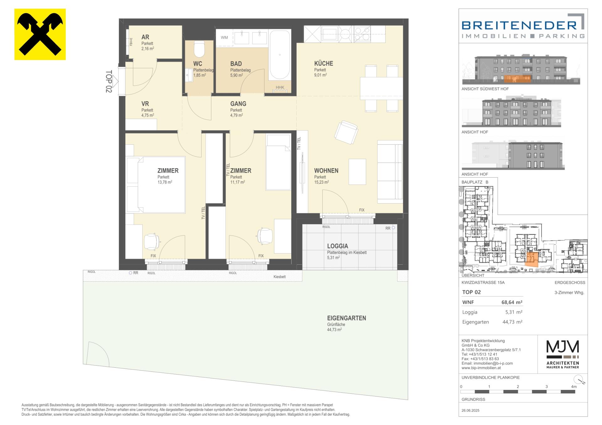 Die Preise verstehen sich als Nettokaufpreise zzgl. USt. Hinzu kommen 3,5 % Grunderwerbsteuer, 1,1 % Grundbucheintragungsgebühr sowie ein Treuhand- und Vertragserrichtungsentgelt von 1,5 % des Gesamtkaufpreises (zzgl. USt und Barauslagen).