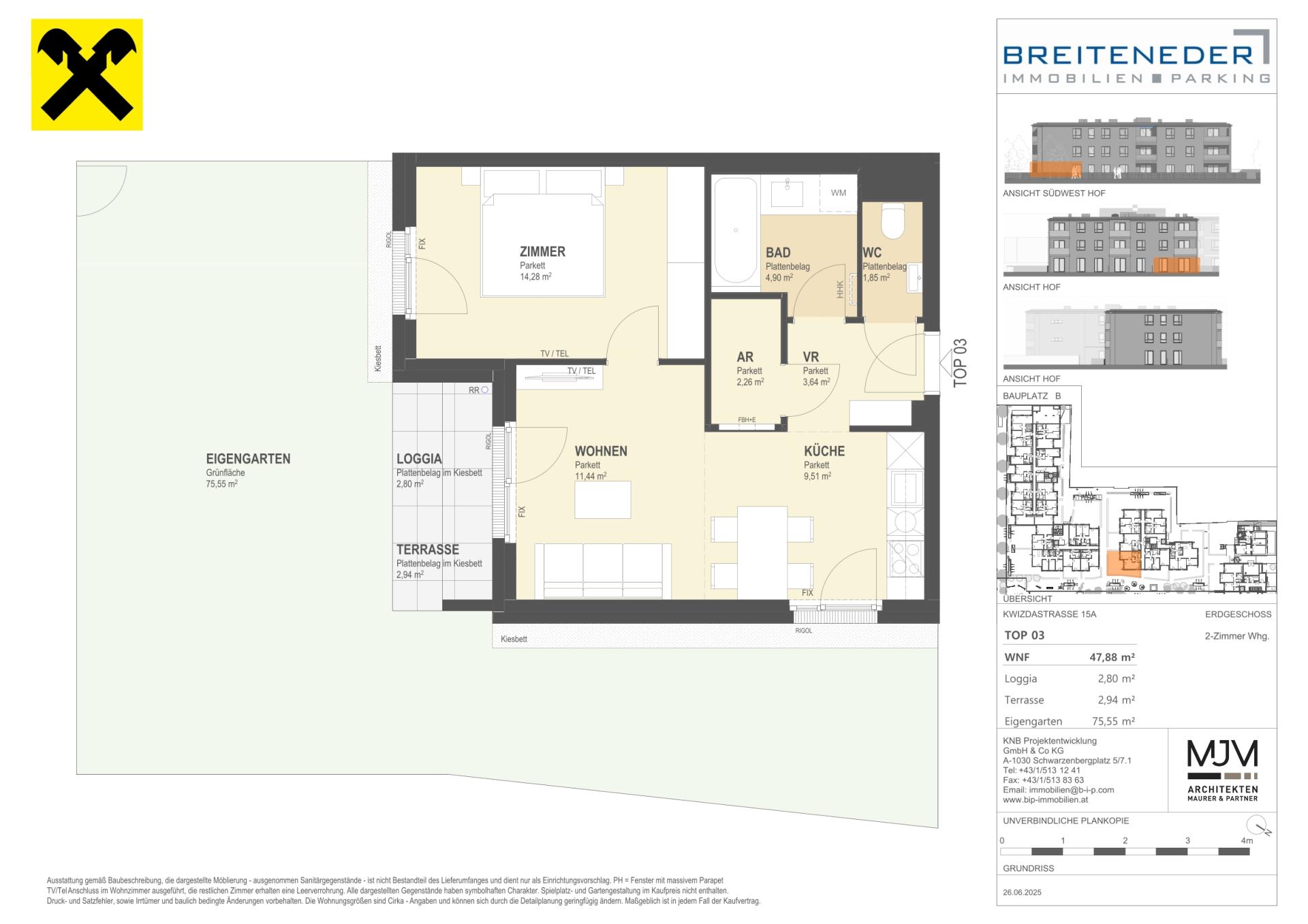 Die Preise verstehen sich als Nettokaufpreise zzgl. USt. Hinzu kommen 3,5 % Grunderwerbsteuer, 1,1 % Grundbucheintragungsgebühr sowie ein Treuhand- und Vertragserrichtungsentgelt von 1,5 % des Gesamtkaufpreises (zzgl. USt und Barauslagen).