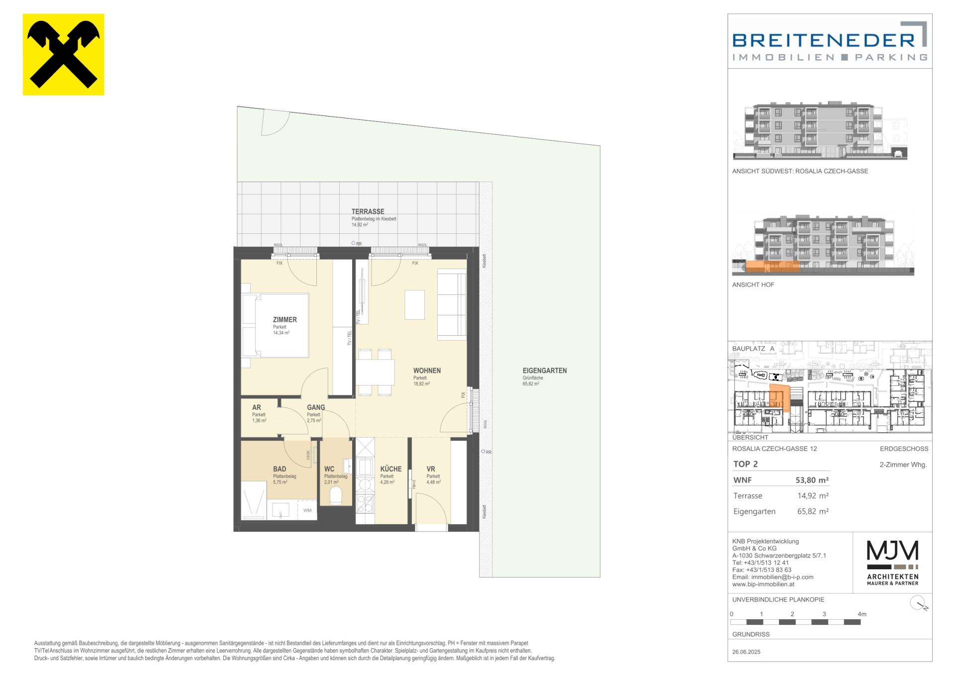 Die Preise verstehen sich als Nettokaufpreise zzgl. USt. Hinzu kommen 3,5 % Grunderwerbsteuer, 1,1 % Grundbucheintragungsgebühr sowie ein Treuhand- und Vertragserrichtungsentgelt von 1,5 % des Gesamtkaufpreises (zzgl. USt und Barauslagen).