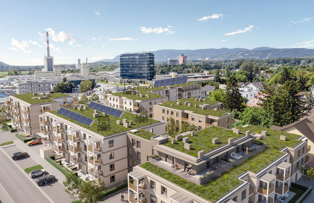 Das Projekt umfasst 135 Vorsorge- und Eigentumswohnungen mit 1–5 Zimmern und Wohnflächen zwischen 40 und 112 m². Auch eine Villa kann erworben werden. Jede Einheit verfügt über eine private Freifläche (Balkon, Loggia, Terrasse oder Garten) und eine zeitgemäße Grundrissgestaltung, die perfekt auf die Wohnbedürfnisse jetziger und zukünftiger Mieter: innen abgestimmt ist.