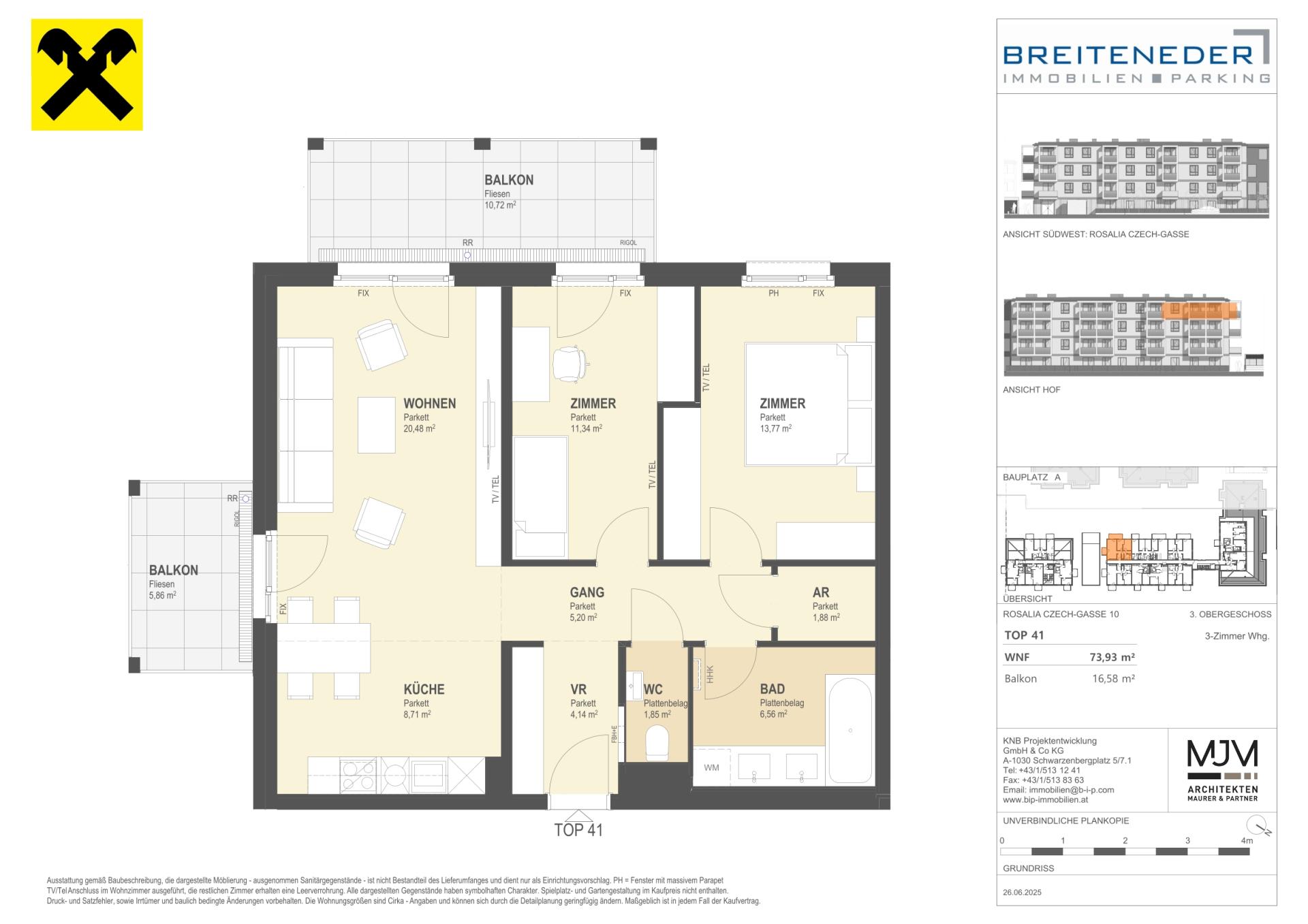 Die Preise verstehen sich als Nettokaufpreise zzgl. USt. Hinzu kommen 3,5 % Grunderwerbsteuer, 1,1 % Grundbucheintragungsgebühr sowie ein Treuhand- und Vertragserrichtungsentgelt von 1,5 % des Gesamtkaufpreises (zzgl. USt und Barauslagen).