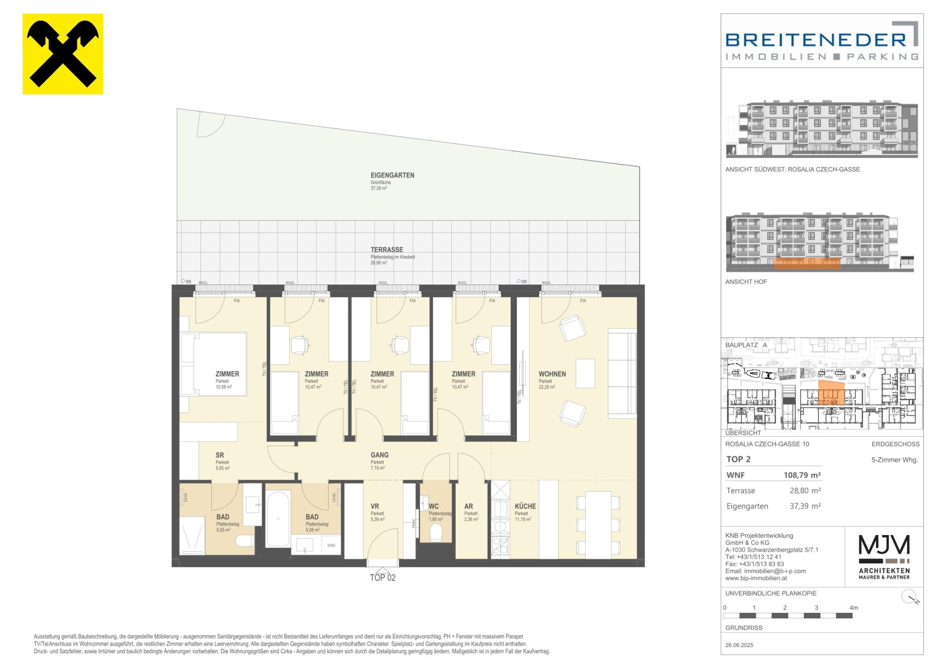 Die Preise verstehen sich als Nettokaufpreise zzgl. USt. Hinzu kommen 3,5 % Grunderwerbsteuer, 1,1 % Grundbucheintragungsgebühr sowie ein Treuhand- und Vertragserrichtungsentgelt von 1,5 % des Gesamtkaufpreises (zzgl. USt und Barauslagen).