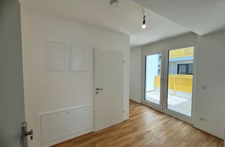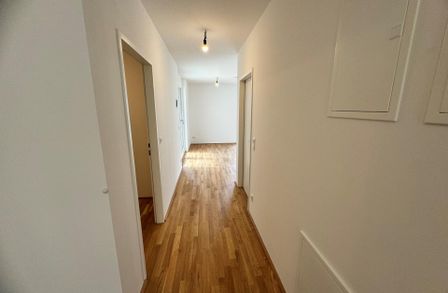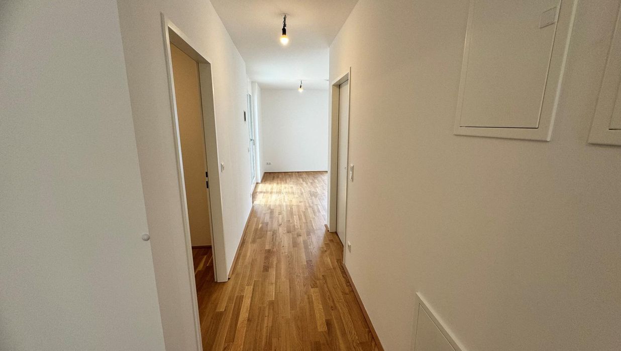 Die Wohnung wird über einen Vorraum betreten, der anschließend in den Gang/Flur der Wohnung übergeht. Über diesen Bereich gelangt man sowohl in das separate WC, als auch in zwei Abstellräume, dir für ausreichend Stauraum in der Wohnung sorgen.