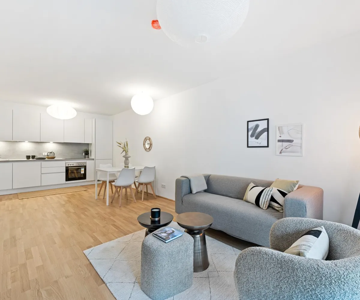 Die Wohnungen sind mit langlebigen, hochwertigen Materialien ausgestattet und bieten eine durchdachte Raumaufteilung, die modernen Wohnansprüchen gerecht wird. Genießen Sie das Zusammenspiel von Komfort und Ästhetik in Ihrer neuen Wohnung, die auch mit Balkon, Terrasse, Loggia oder Garten für zusätzlichen Freiraum sorgt.