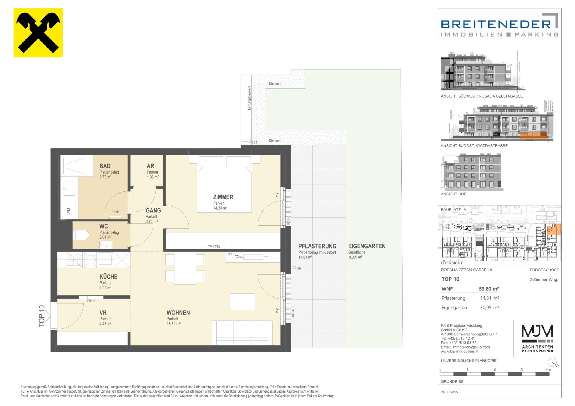 Die Preise verstehen sich als Nettokaufpreise zzgl. USt. Hinzu kommen 3,5 % Grunderwerbsteuer, 1,1 % Grundbucheintragungsgebühr sowie ein Treuhand- und Vertragserrichtungsentgelt von 1,5 % des Gesamtkaufpreises (zzgl. USt und Barauslagen).