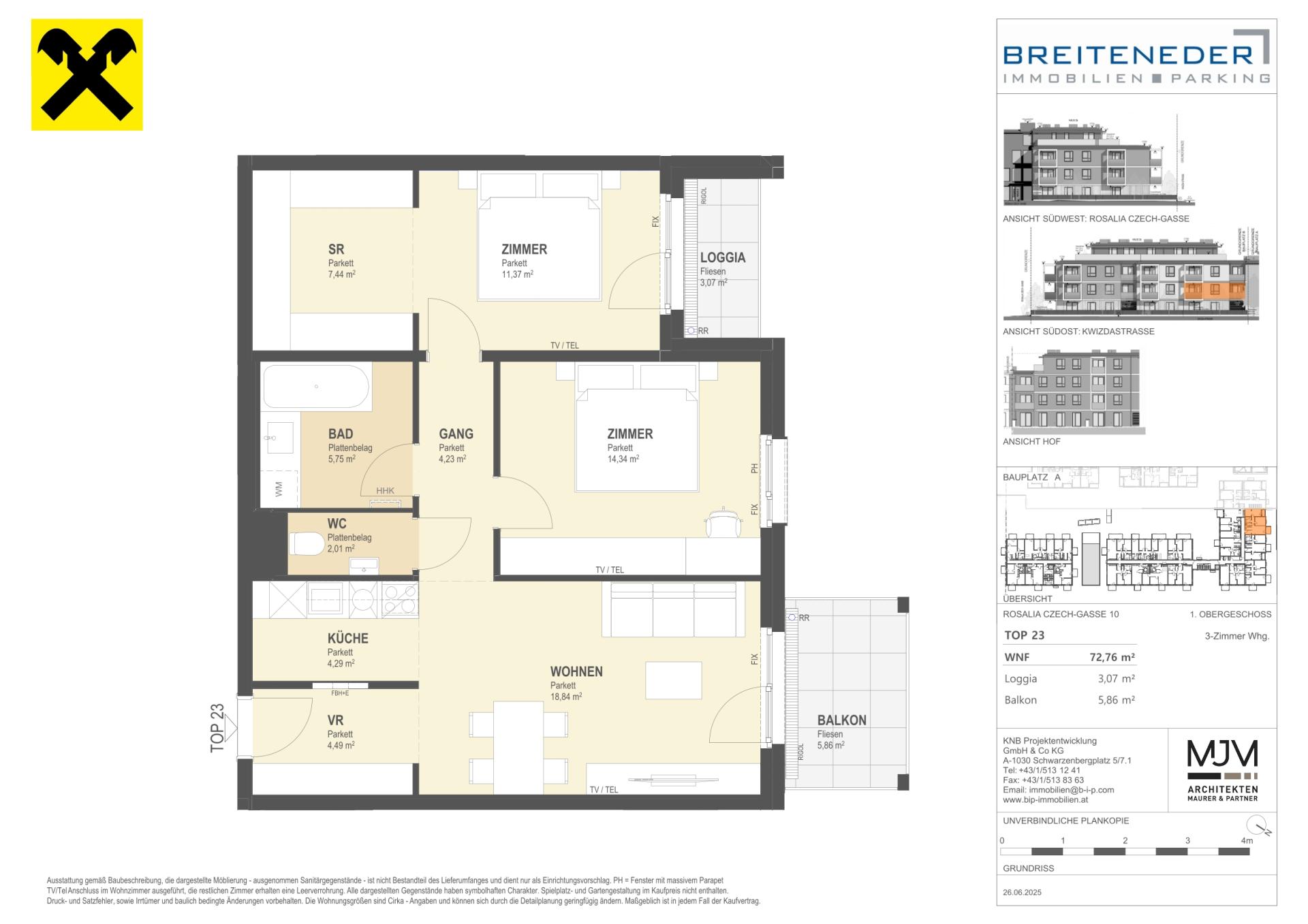 Die Preise verstehen sich als Nettokaufpreise zzgl. USt. Hinzu kommen 3,5 % Grunderwerbsteuer, 1,1 % Grundbucheintragungsgebühr sowie ein Treuhand- und Vertragserrichtungsentgelt von 1,5 % des Gesamtkaufpreises (zzgl. USt und Barauslagen).