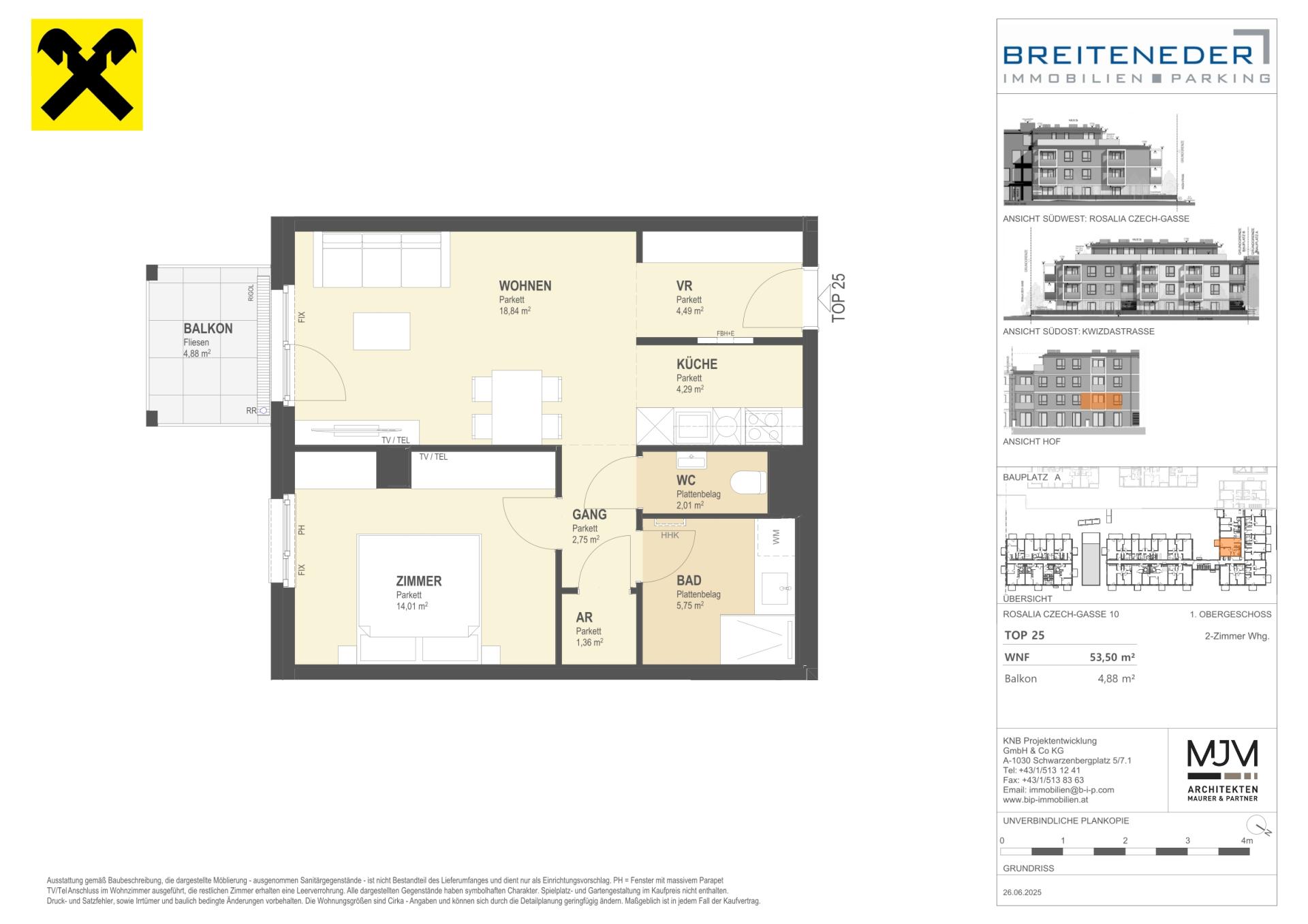 Die Preise verstehen sich als Nettokaufpreise zzgl. USt. Hinzu kommen 3,5 % Grunderwerbsteuer, 1,1 % Grundbucheintragungsgebühr sowie ein Treuhand- und Vertragserrichtungsentgelt von 1,5 % des Gesamtkaufpreises (zzgl. USt und Barauslagen).