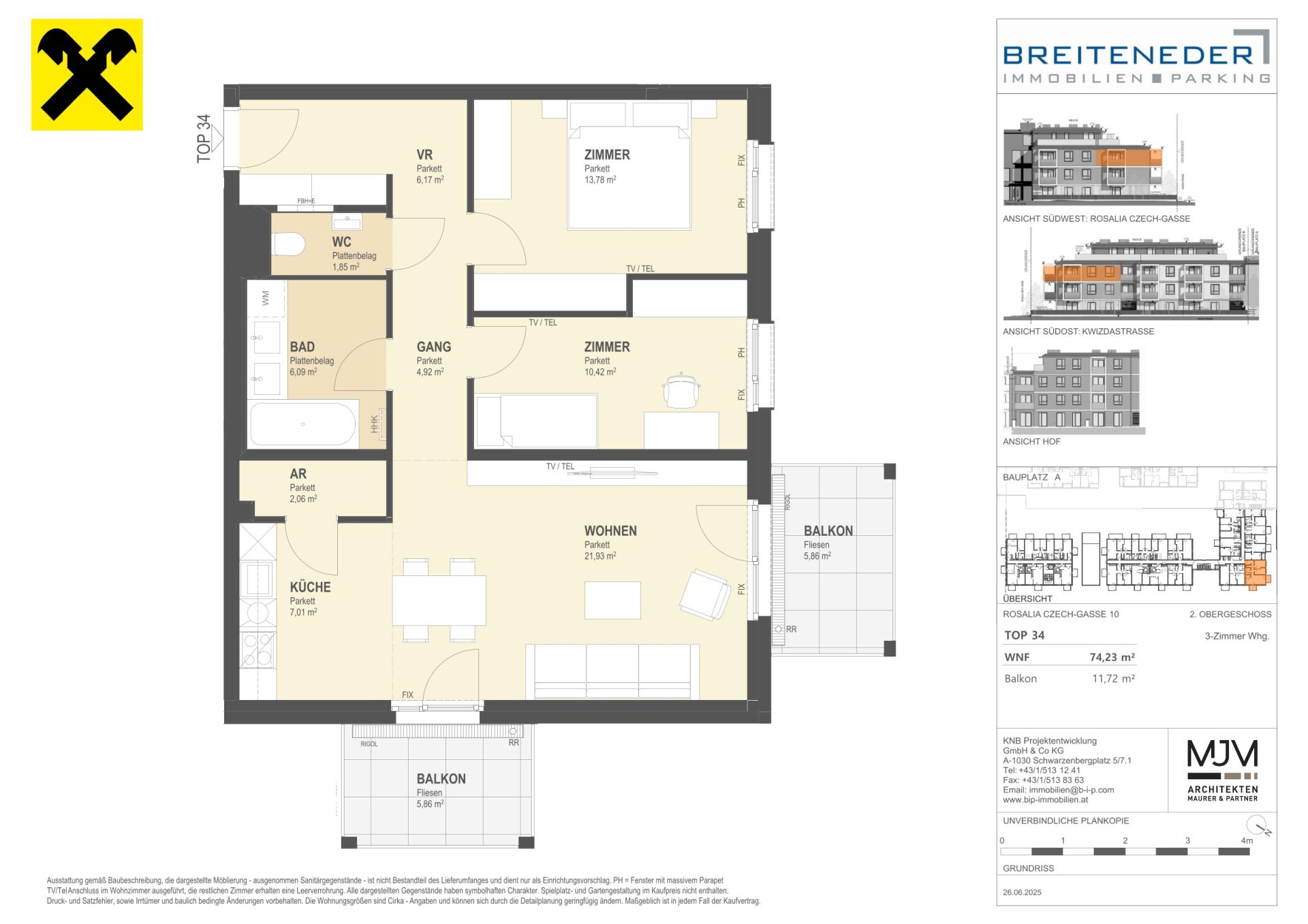 Die Preise verstehen sich als Nettokaufpreise zzgl. USt. Hinzu kommen 3,5 % Grunderwerbsteuer, 1,1 % Grundbucheintragungsgebühr sowie ein Treuhand- und Vertragserrichtungsentgelt von 1,5 % des Gesamtkaufpreises (zzgl. USt und Barauslagen).