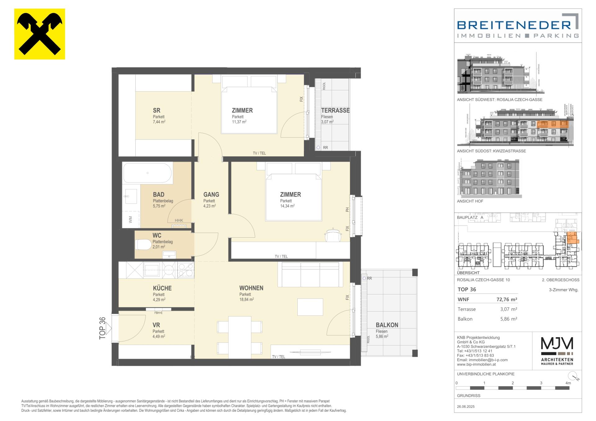 Die Preise verstehen sich als Nettokaufpreise zzgl. USt. Hinzu kommen 3,5 % Grunderwerbsteuer, 1,1 % Grundbucheintragungsgebühr sowie ein Treuhand- und Vertragserrichtungsentgelt von 1,5 % des Gesamtkaufpreises (zzgl. USt und Barauslagen).