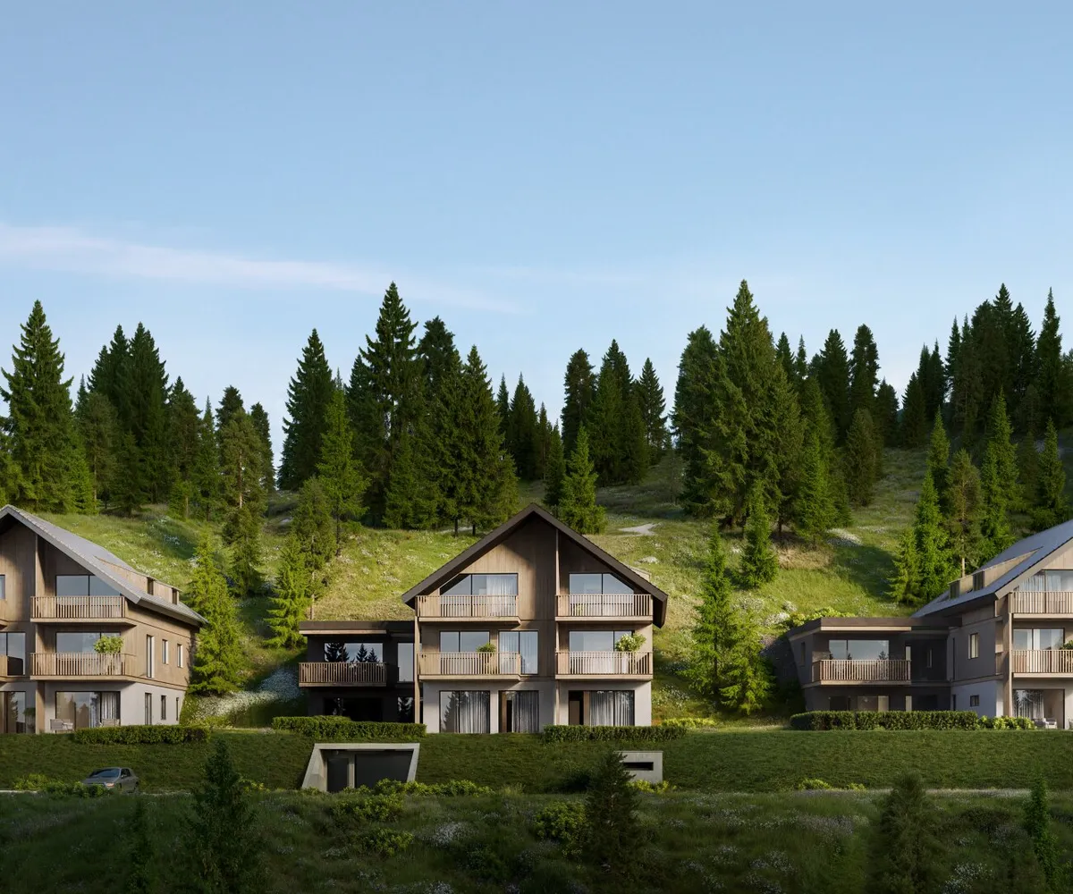 Inmitten der atemberaubenden Kärntner Nockberge, auf der sonnigen Hochrindl, entstehen drei Häuser, mit je 8 Wohnungen.