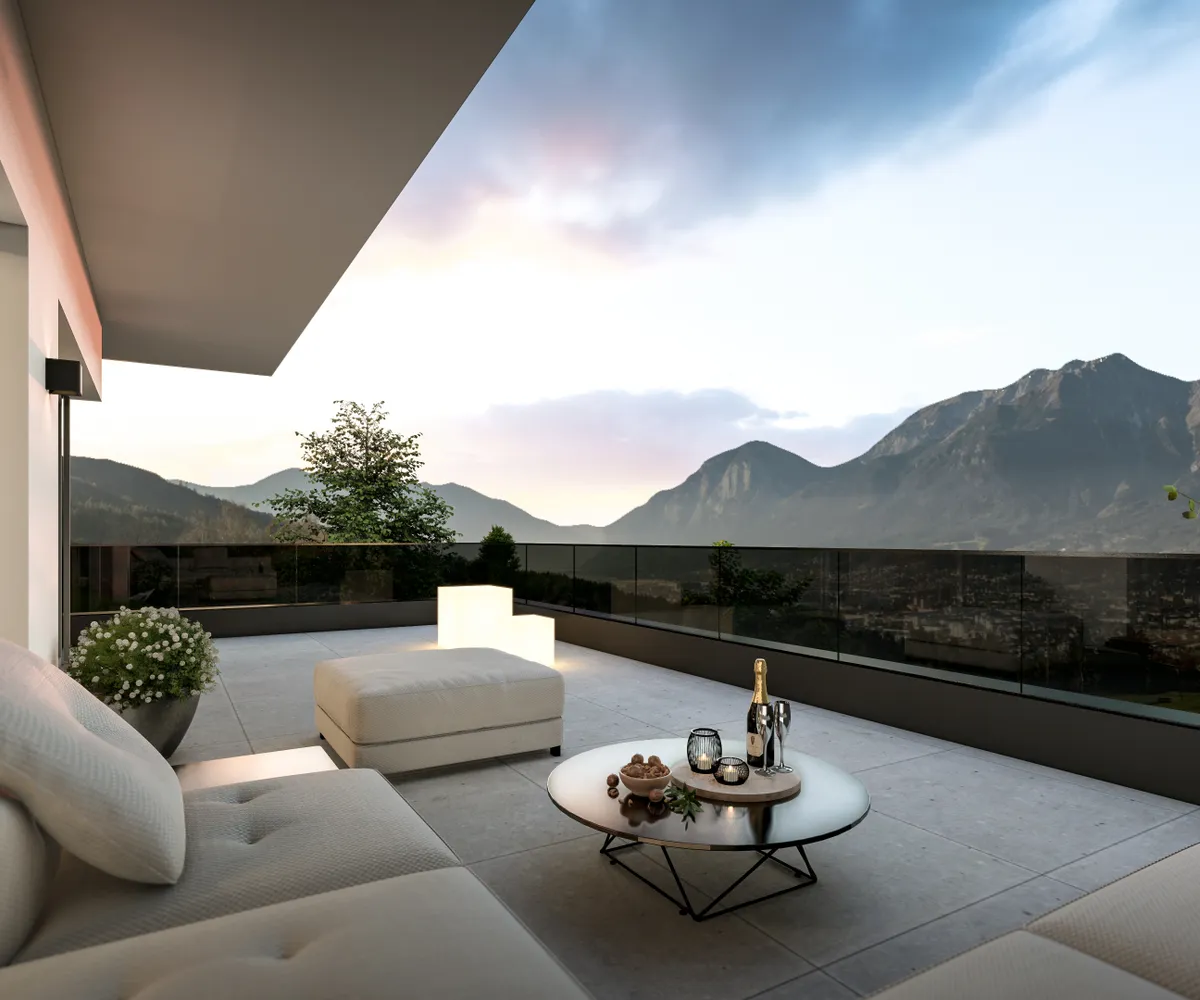Erleben Sie modernes Wohnen in einer der schönsten Lagen Tirols – mit einem unvergleichlichen Panoramablick auf die Stadt Innsbruck und die majestätische Alpenkulisse.