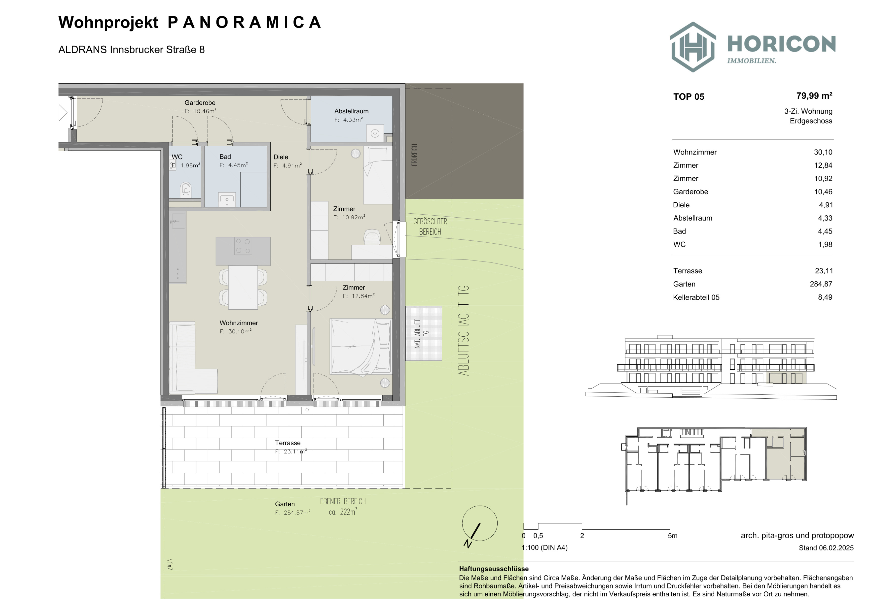 Diese luxuriöse 3-Zimmer-Wohnung Top W05 im Erdgeschoss bietet auf ca. 80 m² Wohnfläche alles, was Sie sich von einem modernen Zuhause wünschen – ergänzt durch eine atemberaubende Terrasse von über 23,11 m², die Ihnen einen unvergleichlichen Blick über Innsbruck bietet. Durch die West-Ausrichtung ist diese Einheit optimal situiert. Ein riesiger Gartenbereich rundet das Angebot ab.
