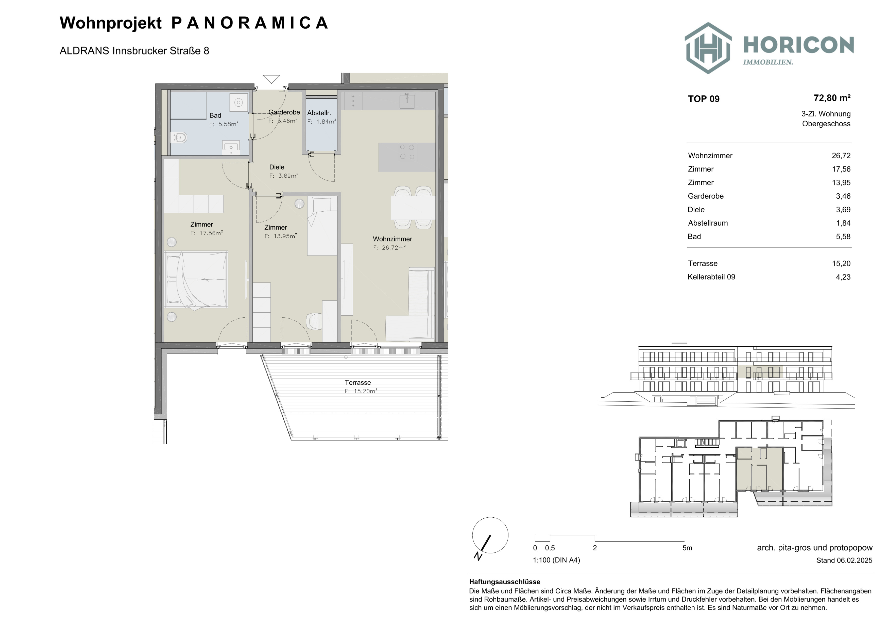 Die Liegenschaft "ALDRANS PANORAMICA" befindet sich in der Gemeinde Aldrans auf der südöstlich von Innsbruck gelegenen Mittelgebirgsterrasse. Aldrans zählt zu den bevorzugten Wohnstandorten im Großraum Innsbruck und verbindet naturnahes Wohnen mit einer guten Anbindung an die Landeshauptstadt.
