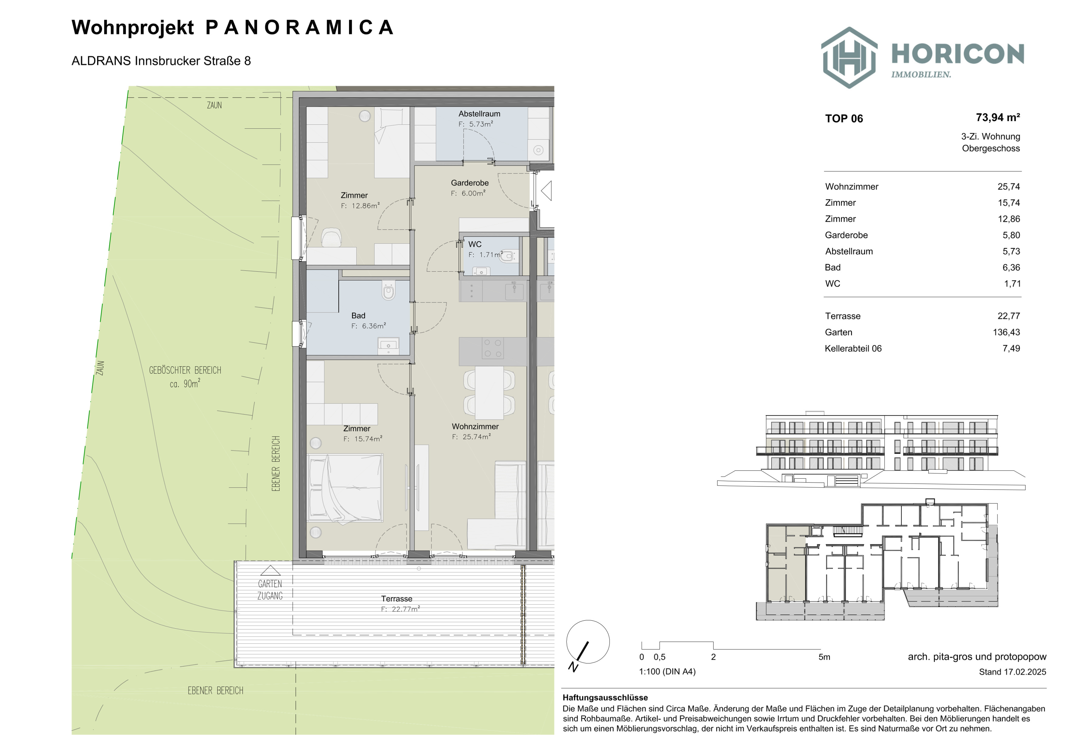 Die Liegenschaft "ALDRANS PANORAMICA" befindet sich in der Gemeinde Aldrans auf der südöstlich von Innsbruck gelegenen Mittelgebirgsterrasse. Aldrans zählt zu den bevorzugten Wohnstandorten im Großraum Innsbruck und verbindet naturnahes Wohnen mit einer guten Anbindung an die Landeshauptstadt.