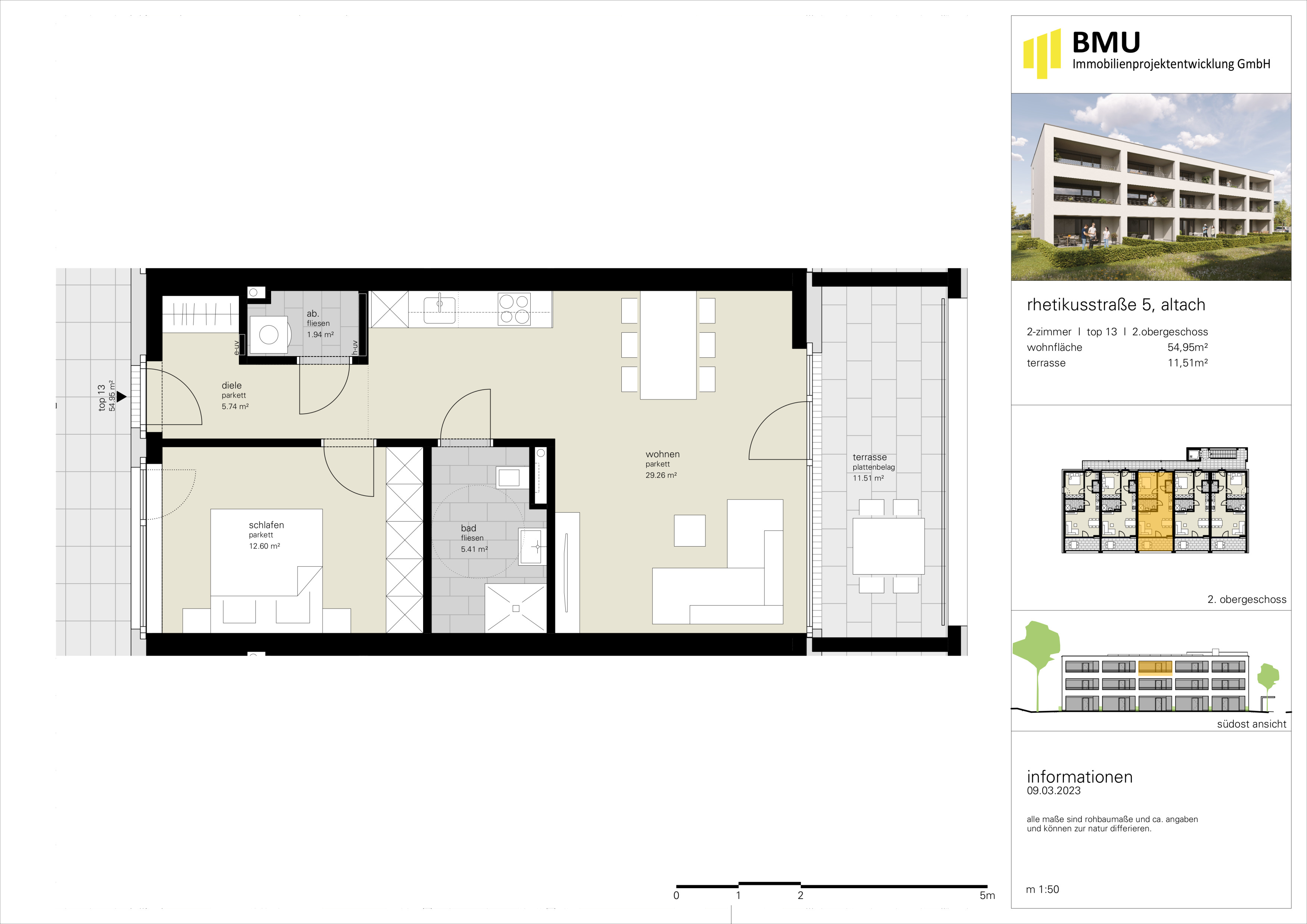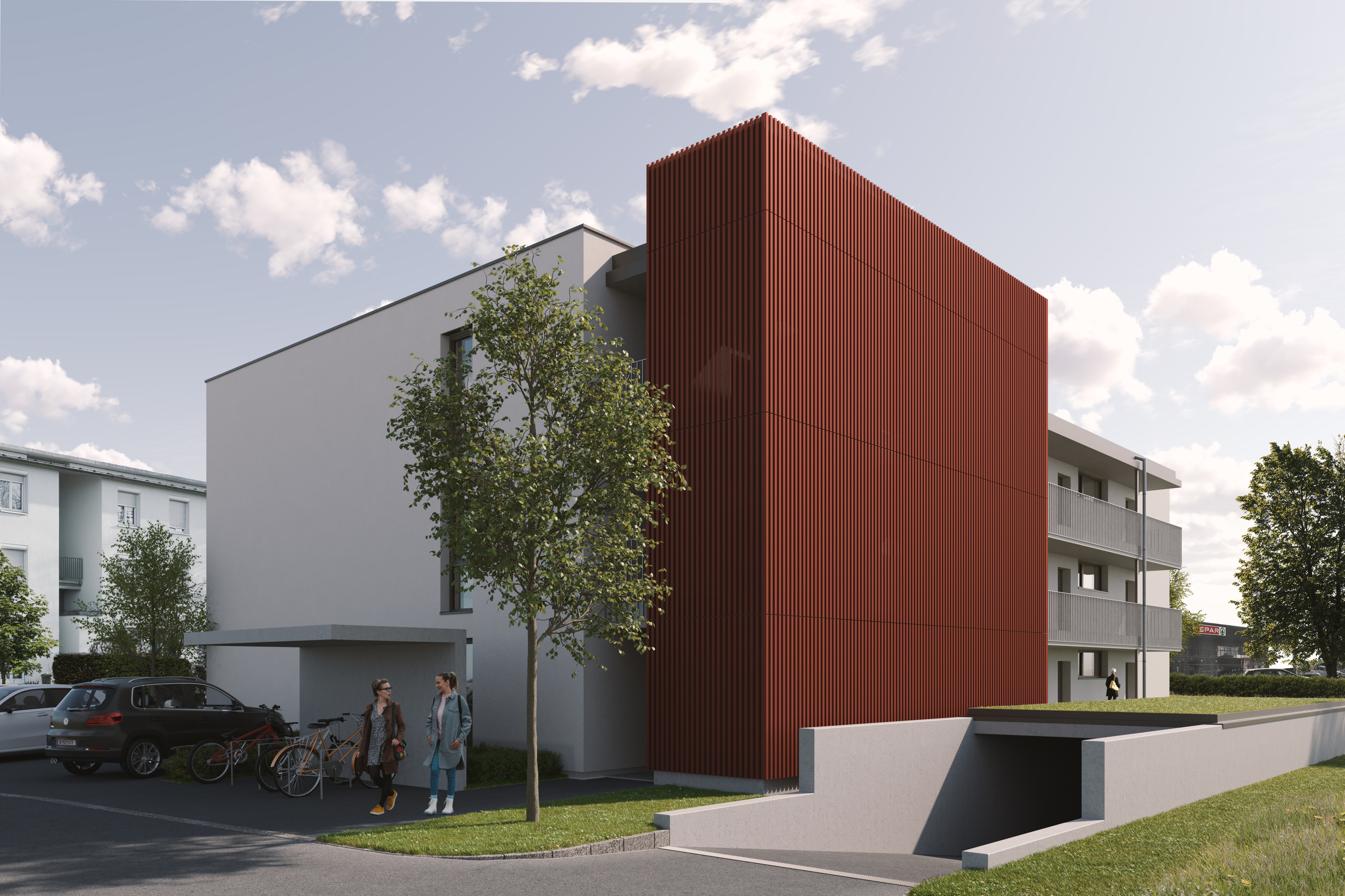 Die Wohnanlage befindet sich in der Rhetikusstraße in Altach, in Mitten des Rheintals. Die Grenze zur Schweiz, sowie Autobahnauf- & Abfahrt auf die A14 in Richtung Bregenz sind in wenigen Fahrminuten zu erreichen. Die Anbindung an den öffentlichen Verkehr ist in wenigen Gehminuten erreichbar.