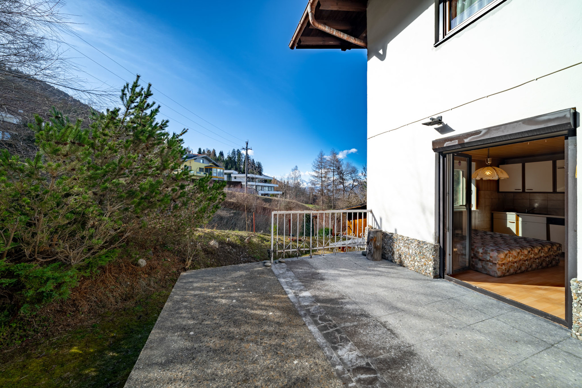Diese Wohnung befindet sich in einer ausgesprochen ruhigen und idyllischen Wohngegend am Wiesenweg am Waldrand in Axams. Die exklusive Lage am Waldrand macht sie besonders attraktiv für Menschen, die die Ruhe der Natur suchen und gleichzeitig die Nähe zur Stadt schätzen. Eine optimale Anbindung an das Stadtzentrum wird durch die nur 400 Meter entfernte Bushaltestelle gewährleistet, die im 20-Minuten-Takt eine schnelle Verbindung ins Herz von Innsbruck bietet.