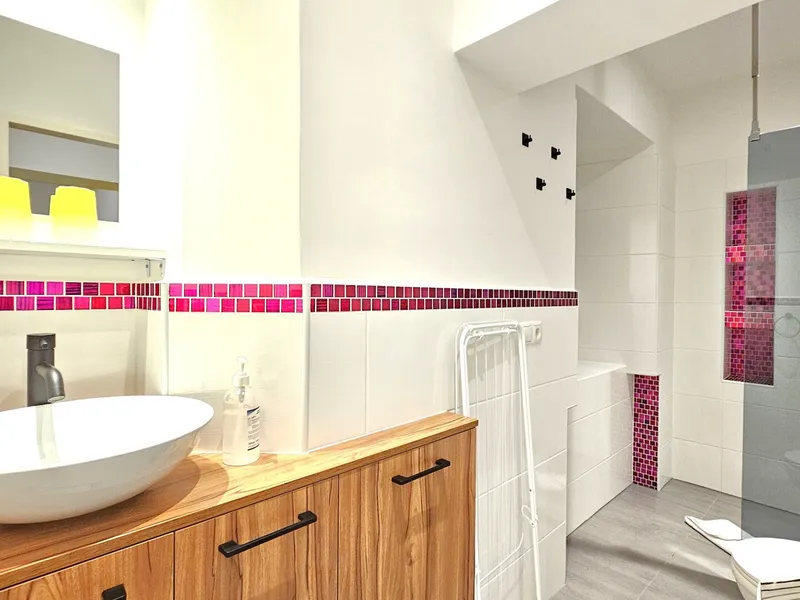 Die Wohnung wurde kürzlich modernisiert und präsentiert sich in einem top Zustand. Das Badezimmer wurde komplett modernisiert (Fliesen + Dusche und Waschbecken). Die Möbel und Böden im Schlafzimmer, Wohnzimmer und Vorzimmer sind neu.
