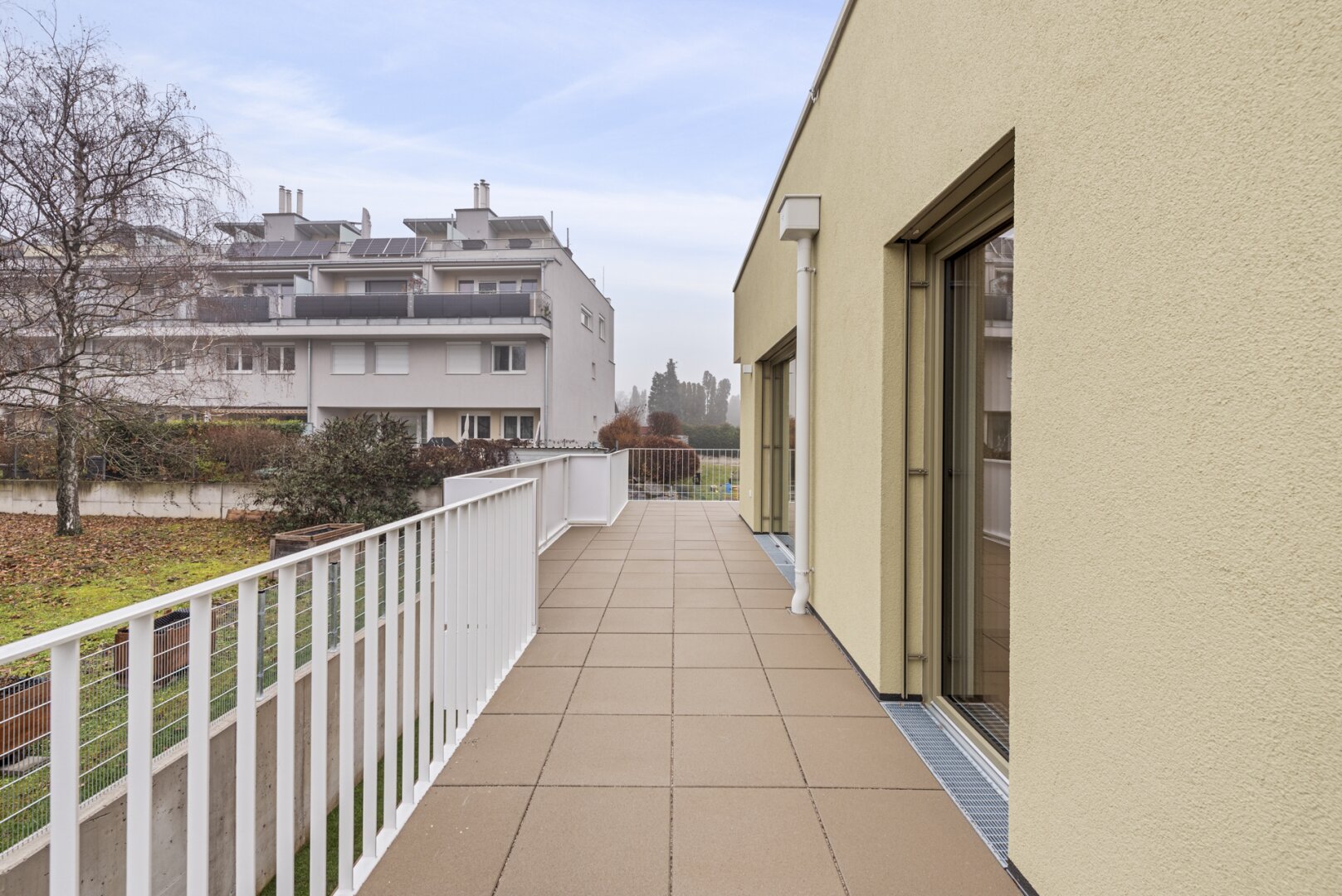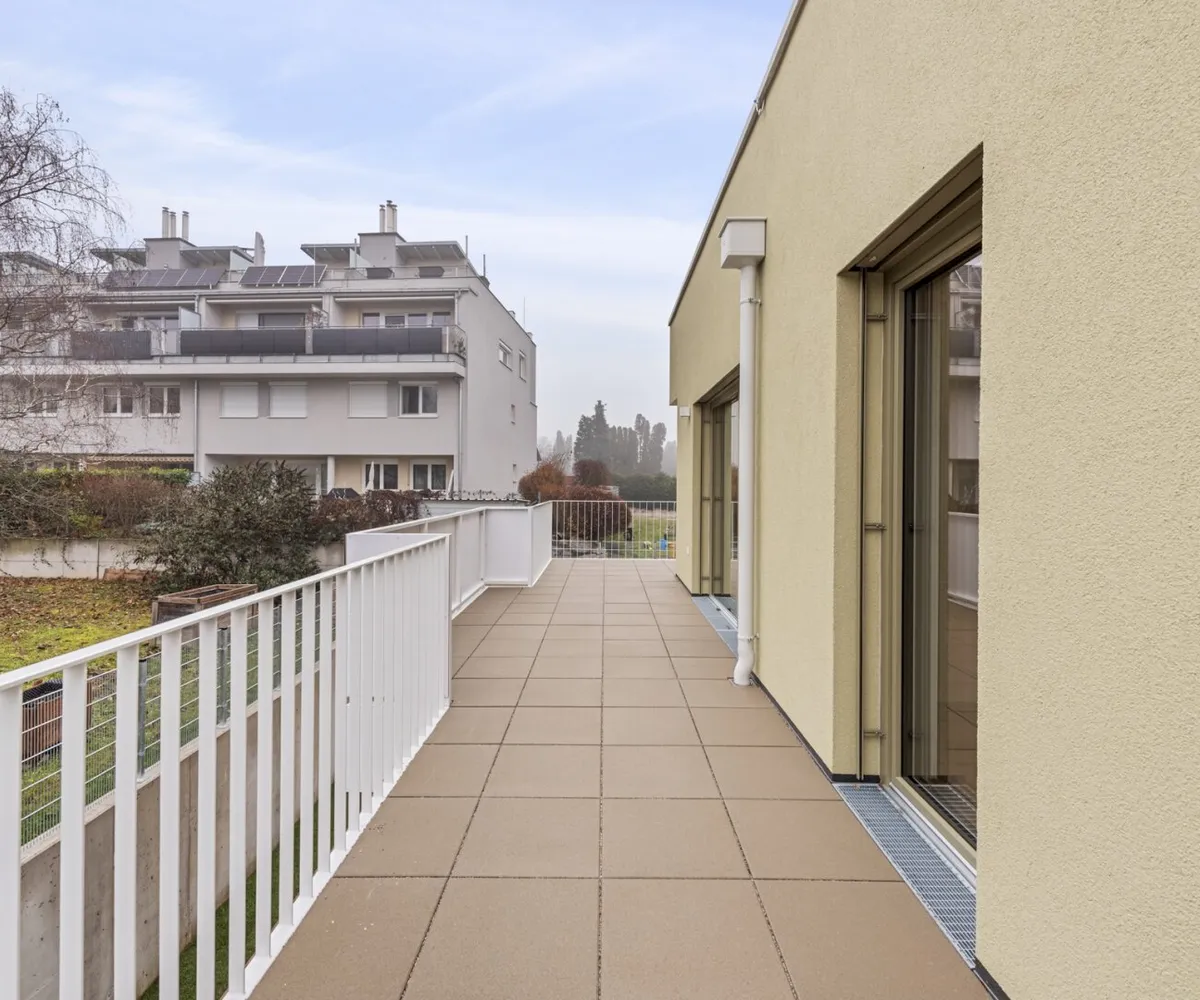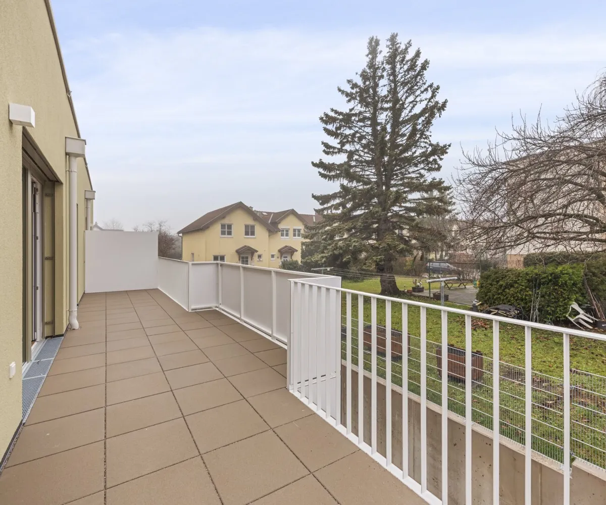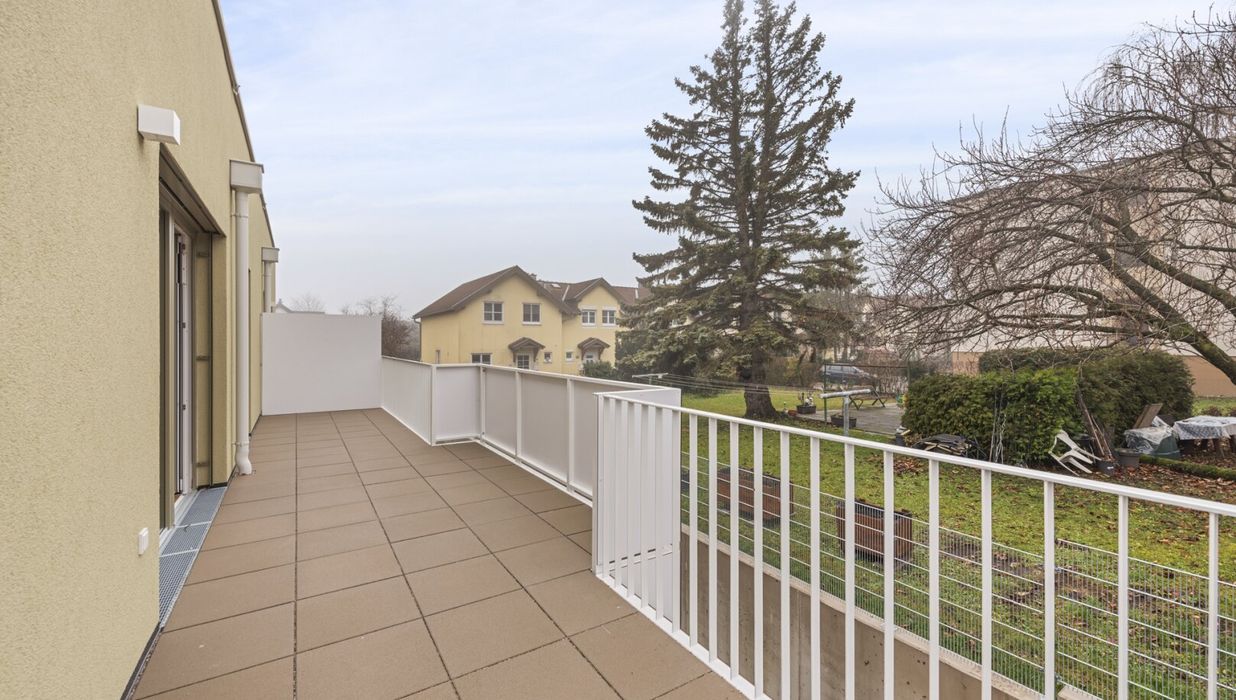 Die hervorragend aufgeteilte 4-Zimmer-Wohnung mit zwei Bädern ist im 1. Obergeschoß gelegen und bietet eine Wohnfläche von ca. 96,37 m² sowie einen Balkon mit ca. 49,58 m². Dieser läuft rund um die Wohnung und ist somit aus Wohn- und Schlafräumen direkt begehbar. Größtenteils geht der Blick ausschließlich ins Grün von Bad Vöslau.