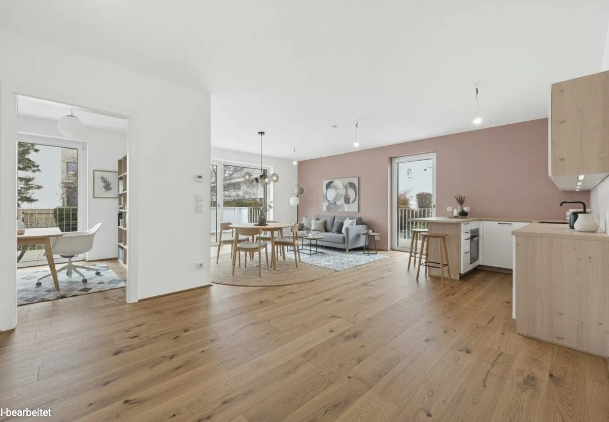 Fahrradabstellplätze, Kinderwagenraum, Spielplatz sowie eine Tiefgarage vervollständigen das Angebot des durchdachten, modernen und nachhaltigen Projekts. Bei 2-Zimmer-Wohnungen ist ein Tiefgaragenplatz (ab € 20.000,–) verpflichtend zusätzlich zu erwerben. Bei 3- und 4-Zimmer-Wohnungen gibt es zwei Stellplätze zum vergünstigten Paketpreis (ab € 28.000,–).