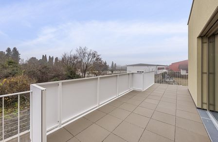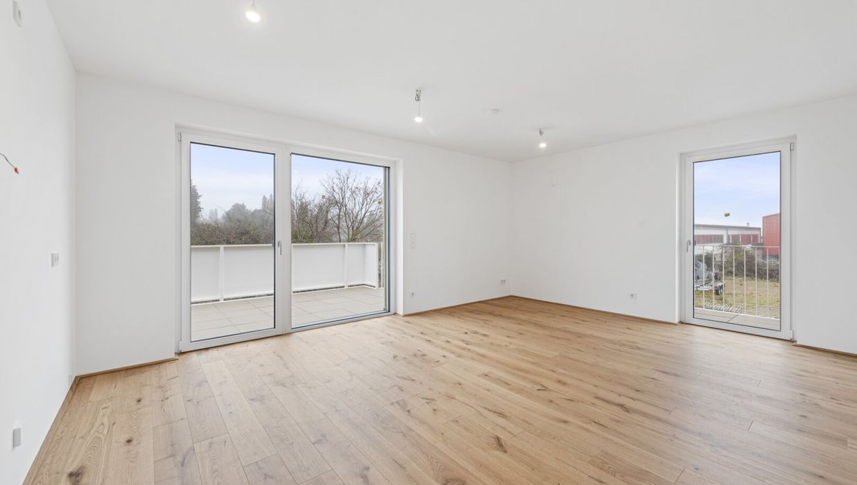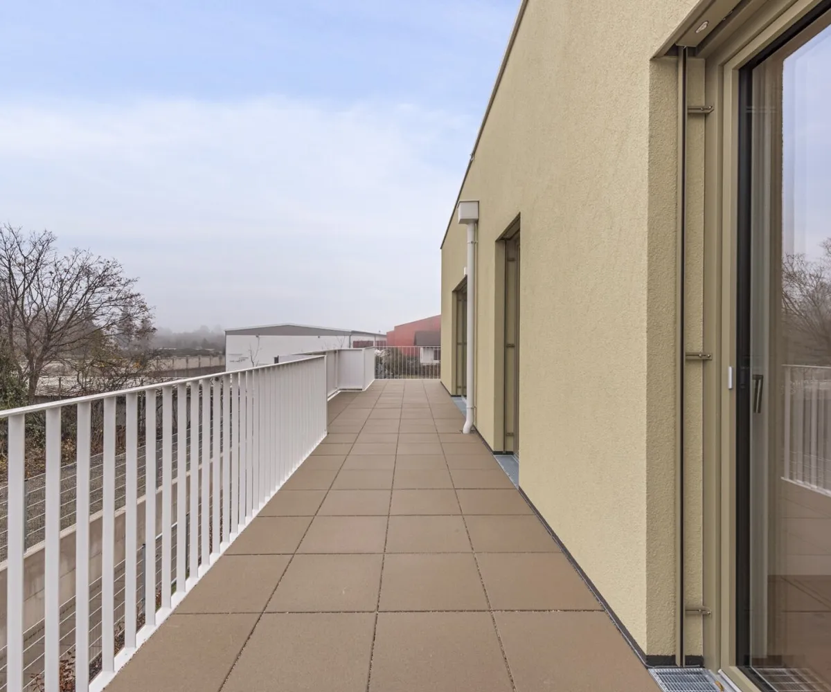 Die gut durchdachte 4-Zimmer-Wohnung mit zwei Bädern ist im 1. Obergeschoß gelegen und bietet eine Wohnfläche von ca. 88,37 m² sowie einen Balkon mit ca. 36,36 m². Dieser läuft rund um die Wohnung und ist somit aus Wohn- und Schlafräumen direkt begehbar. Durch die Ost-West-Ausrichtung der Immobilie werden Ihre zukünftigen Mieter hier bereits morgens von der Sonne wachgeküsst und können abends dem Sonnenuntergang frönen.