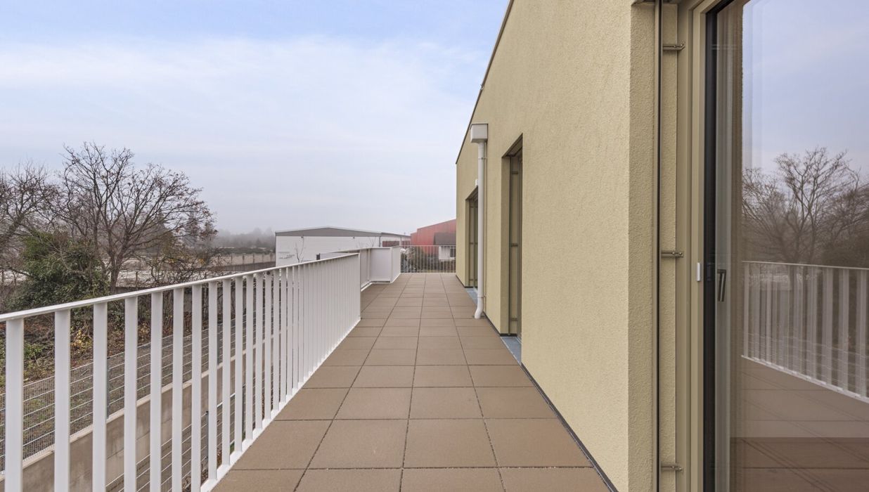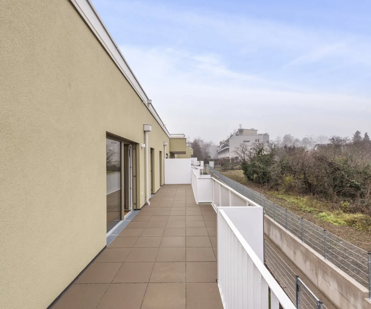 Die gut durchdachte 4-Zimmer-Wohnung mit zwei Bädern ist im 1. Obergeschoß gelegen und bietet eine Wohnfläche von ca. 88,37 m² sowie einen Balkon mit ca. 36,36 m². Dieser läuft rund um die Wohnung und ist somit aus Wohn- und Schlafräumen direkt begehbar. Durch die Ost-West-Ausrichtung der Immobilie werden Sie hier bereits morgens von der Sonne wachgeküsst und können abends dem Sonnenuntergang frönen.