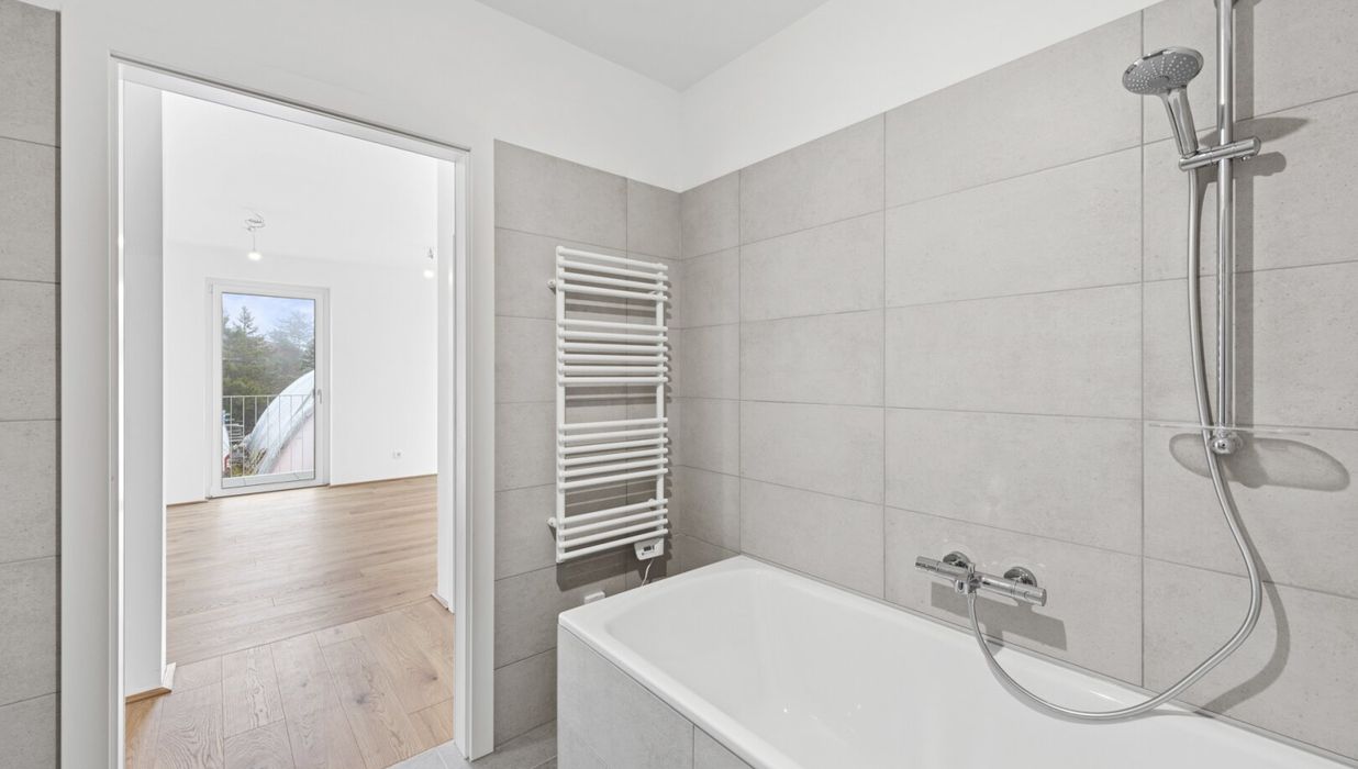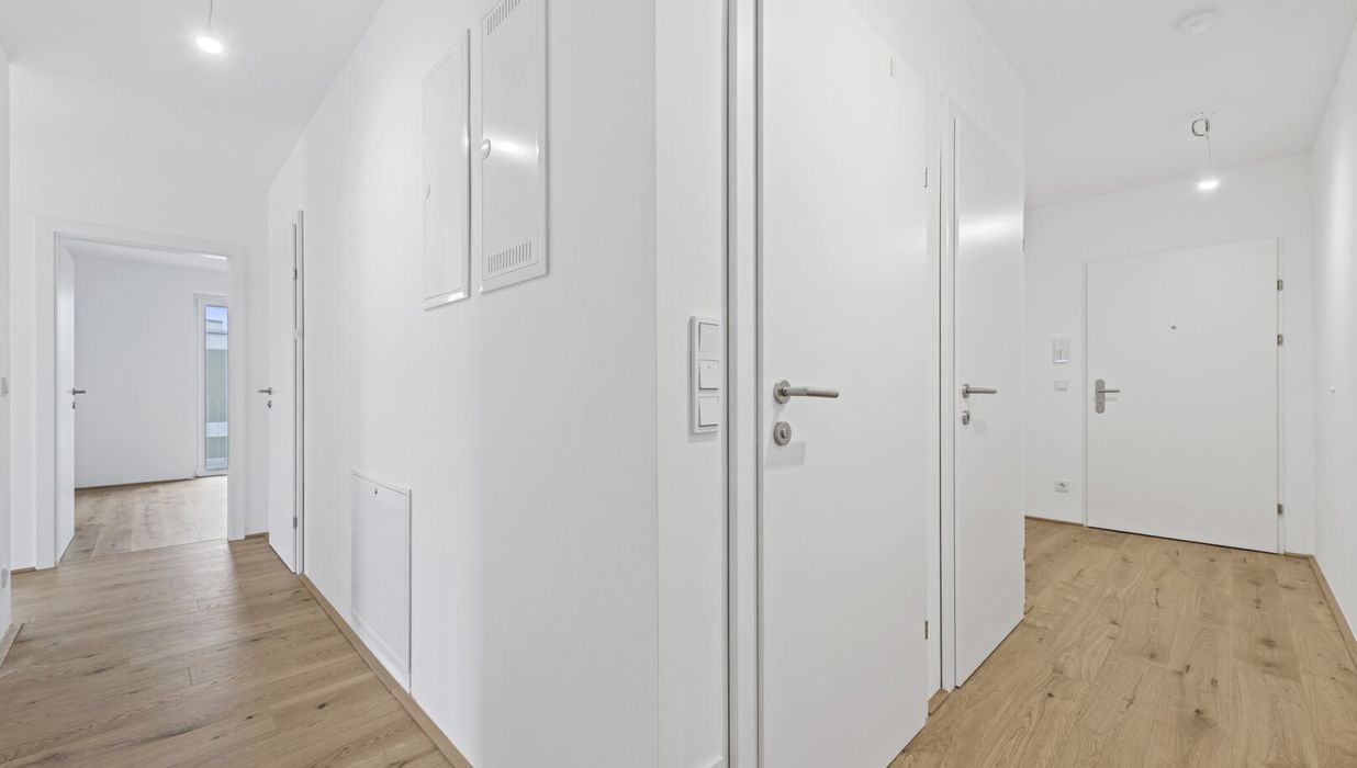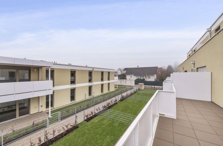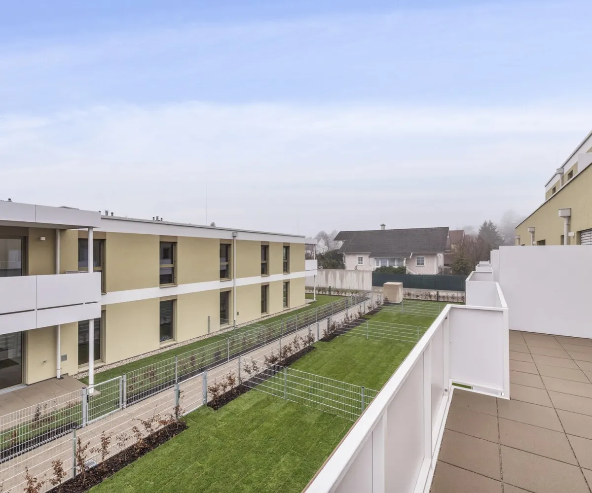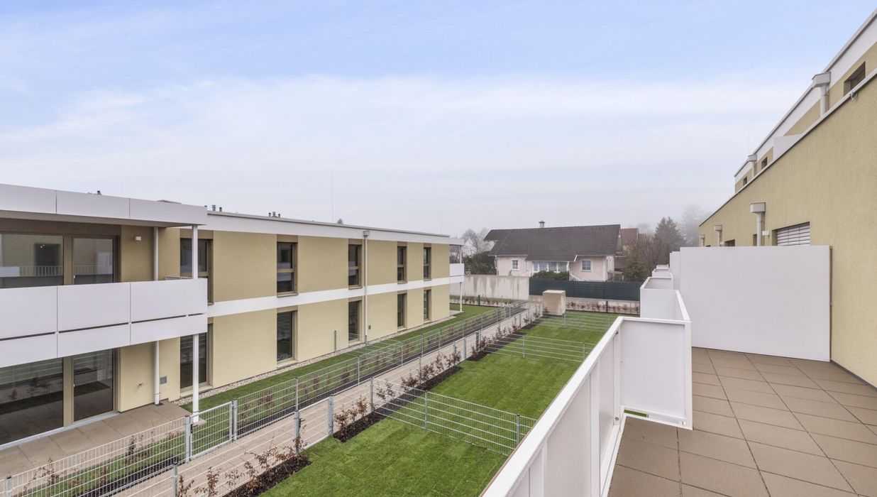 Die lichtdurchflutete 3-Zimmer-Wohnung ist im 1. Obergeschoß gelegen und bietet eine Wohnfläche von ca. 69,99 m² sowie einen Balkon mit ca. 29,55 m². Dieser läuft rund um die Wohnung und ist somit aus Wohn- und Schlafräumen direkt begehbar. Viel Freiheitsgefühl sowie genußvolle Sonnenstunden sind Ihren zukünftigen Mietern durch die Süd-Ost-Ausrichtung jedenfalls garantiert.