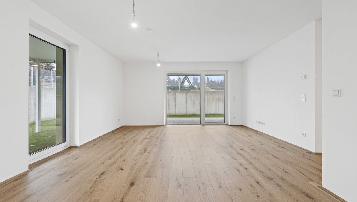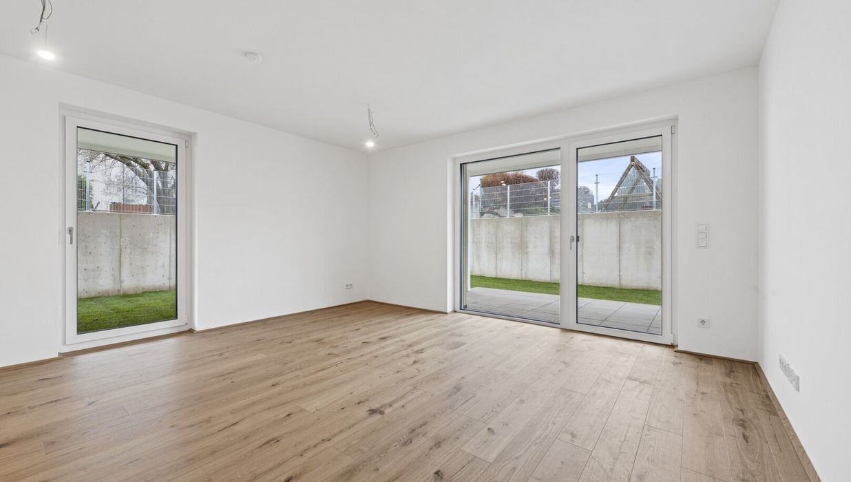 Fahrradabstellplätze, Kinderwagenraum, Spielplatz sowie eine Tiefgarage vervollständigen das Angebot des durchdachten, modernen und nachhaltigen Projekts. Bei 2-Zimmer-Wohnungen ist ein Tiefgaragenplatz (ab € 20.000,–) verpflichtend zusätzlich zu erwerben. Bei 3- und 4-Zimmer-Wohnungen gibt es zwei Stellplätze zum vergünstigten Paketpreis (ab € 28.000,–).