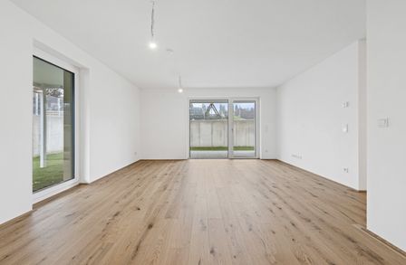 Die 3-Zimmer-Wohnung ist im Erdgeschoss gelegen und bietet eine Wohnfläche von ca. 77,08 m² sowie eine Terrasse mit ca. 11,73 m² und einen Garten mit ca. 130,11 m². Dieser ist aus dem Wohn- sowie den Schlafräumen direkt zu erreichen. Da es sich um eine Eckimmobilie handelt, ist viel Privatsphäre gegeben – und die lässt sich im wunderbaren Grün bestens genießen.