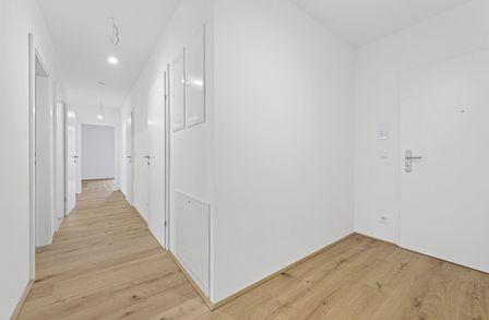 Fahrradabstellplätze, Kinderwagenraum, Spielplatz sowie eine Tiefgarage vervollständigen das Angebot des durchdachten, modernen und nachhaltigen Projekts. Bei 2-Zimmer-Wohnungen ist ein Tiefgaragenplatz (ab € 20.000,–) verpflichtend zusätzlich zu erwerben. Bei 3- und 4-Zimmer-Wohnungen gibt es zwei Stellplätze zum vergünstigten Paketpreis (ab € 28.000,–).