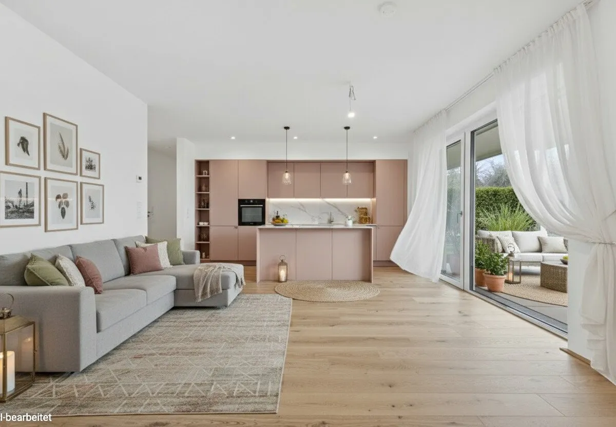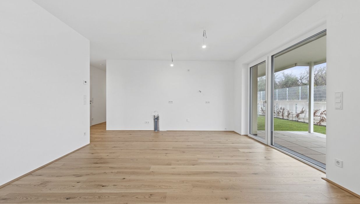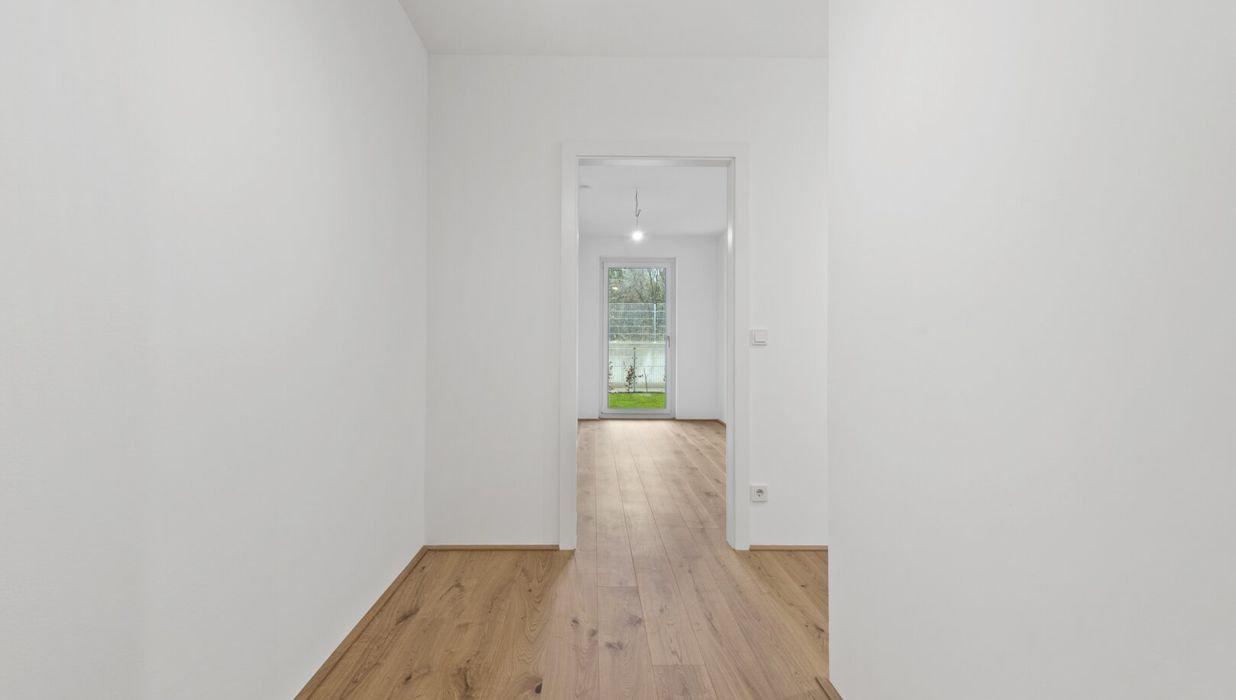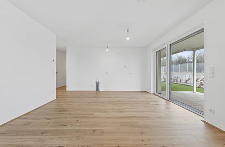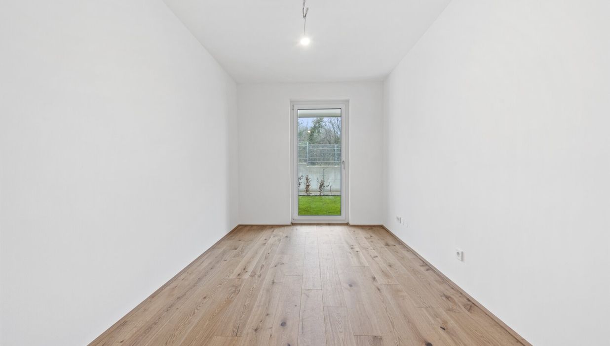Die wunderschön angelegte 4-Zimmer-Wohnung ist im Erdgeschoss gelegen und bietet eine Wohnfläche von ca. 88,37 m² sowie eine Terrasse mit ca. 11,73 m² und einen Garten mit ca. 76,91 m². Dieser ist aus dem Wohn- sowie den drei Schlafräumen direkt zu erreichen. Durch die Ost-West-Ausrichtung der Immobilie genießen Sie hier Morgen- wie Abendsonne und sind im rückwärtigen Teil des Projektes sehr privat gelegen.