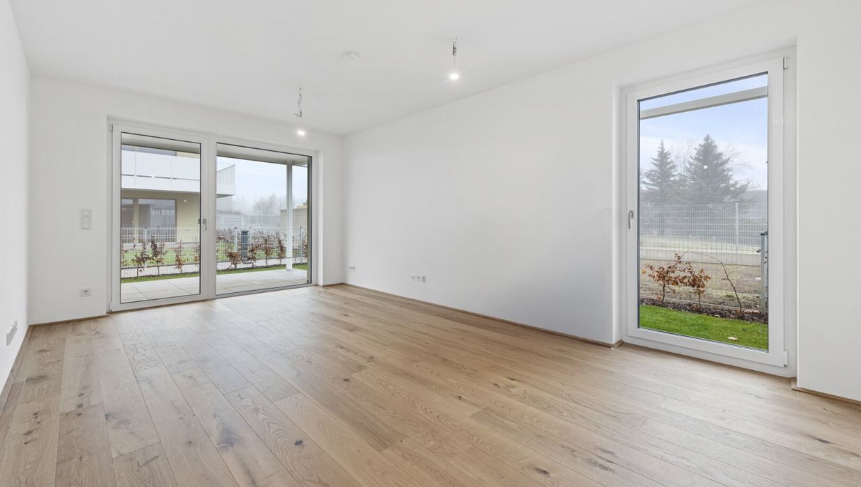 Fahrradabstellplätze, Kinderwagenraum, Spielplatz sowie eine Tiefgarage vervollständigen das Angebot des durchdachten, modernen und nachhaltigen Projekts. Bei 2-Zimmer-Wohnungen ist ein Tiefgaragenplatz (ab € 20.000,–) verpflichtend zusätzlich zu erwerben. Bei 3- und 4-Zimmer-Wohnungen gibt es zwei Stellplätze zum vergünstigten Paketpreis (ab € 28.000,–).