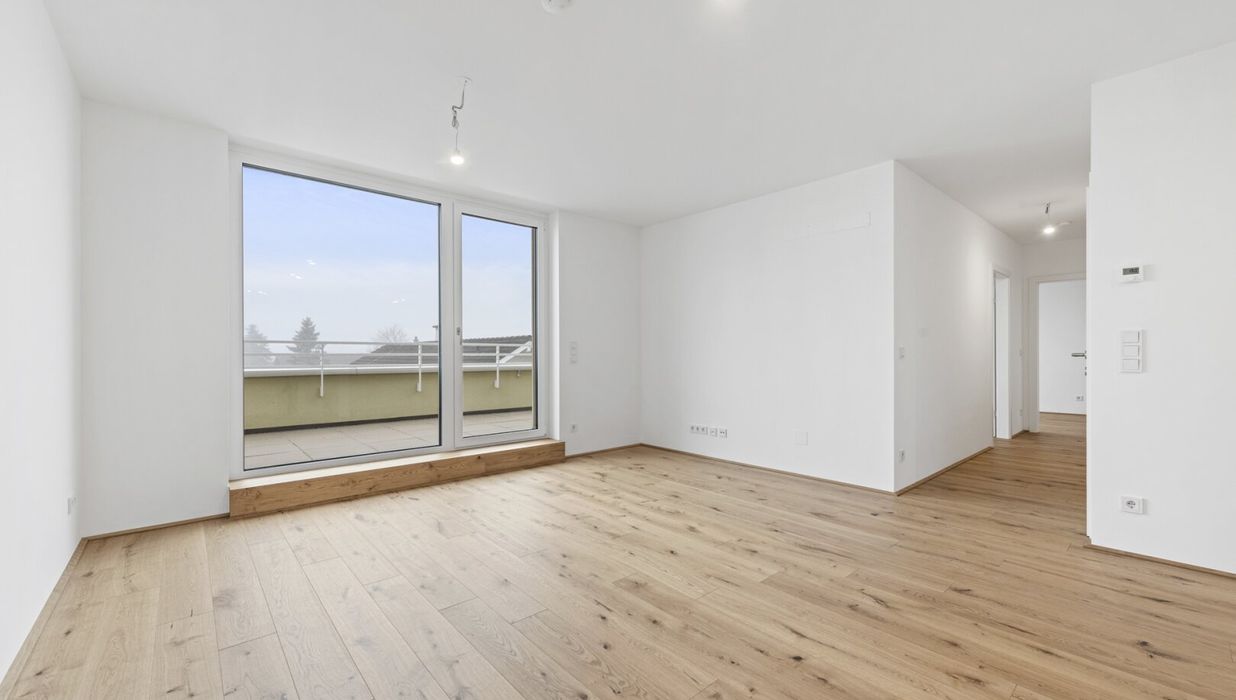 Lichtdurchflutet und freundlich hell präsentiert sich diese 3-Zimmer-Wohnung im 2. Obergeschoß. Mit einer Wohnfläche von ca. 70,06 m² sowie einer Terrasse mit ca. 18,13 m² (von allen Räumen begehbar) erfüllt diese Immobilie mit ihrer Süd-Ausrichtung alle Wohnwünsche. Einladend und verwöhnend!