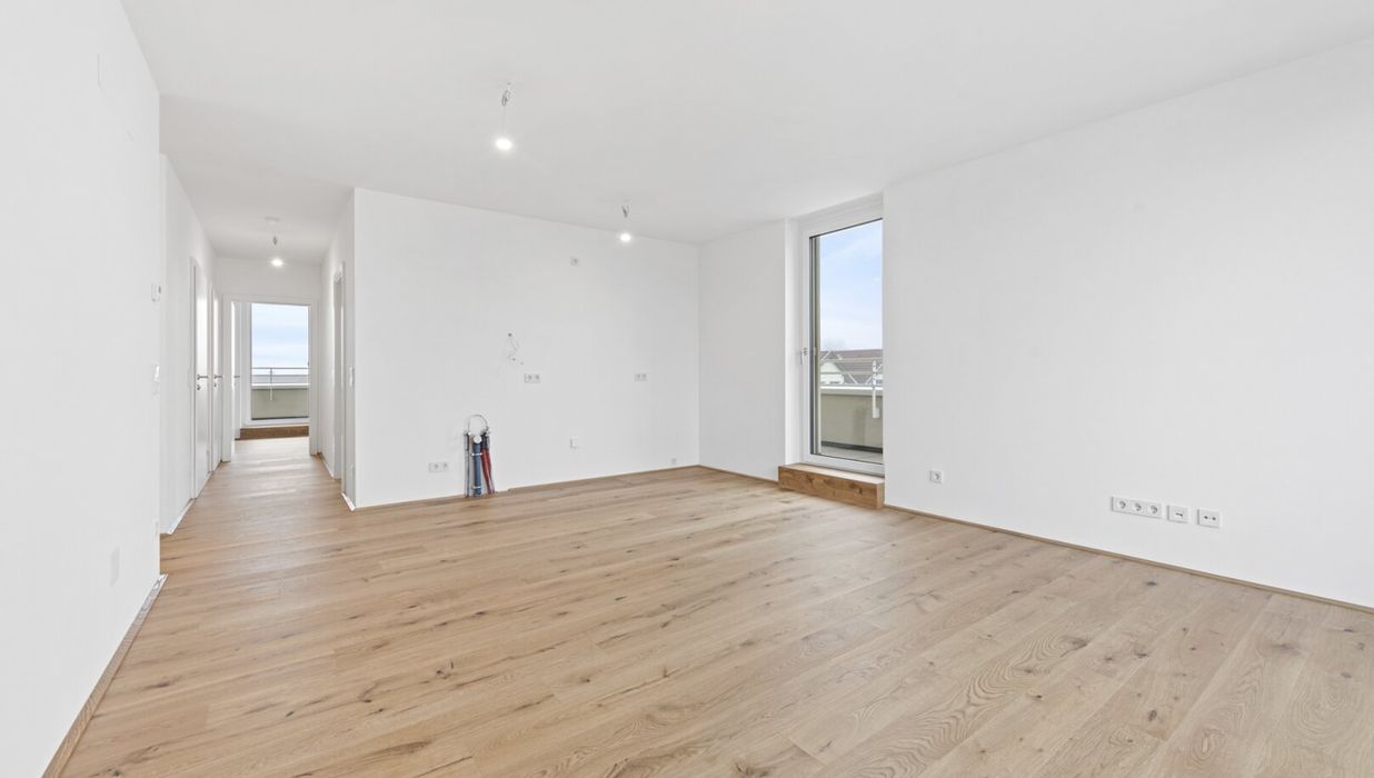 Diese gut durchdachte und ansprechend gestaltete 3-Zimmer-Wohnung ist im 2. Obergeschoß gelegen und bietet eine Wohnfläche von ca. 77,95 m² sowie eine Terrasse mit ca. 34,82 m². Diese ist aus Wohn- und Schlafräumen direkt begehbar und bietet alles, um sich wohlzufühlen, anzukommen und zu entspannen – mit Familie, Freunden oder in den Kaffeepausen des Homeofficetages.