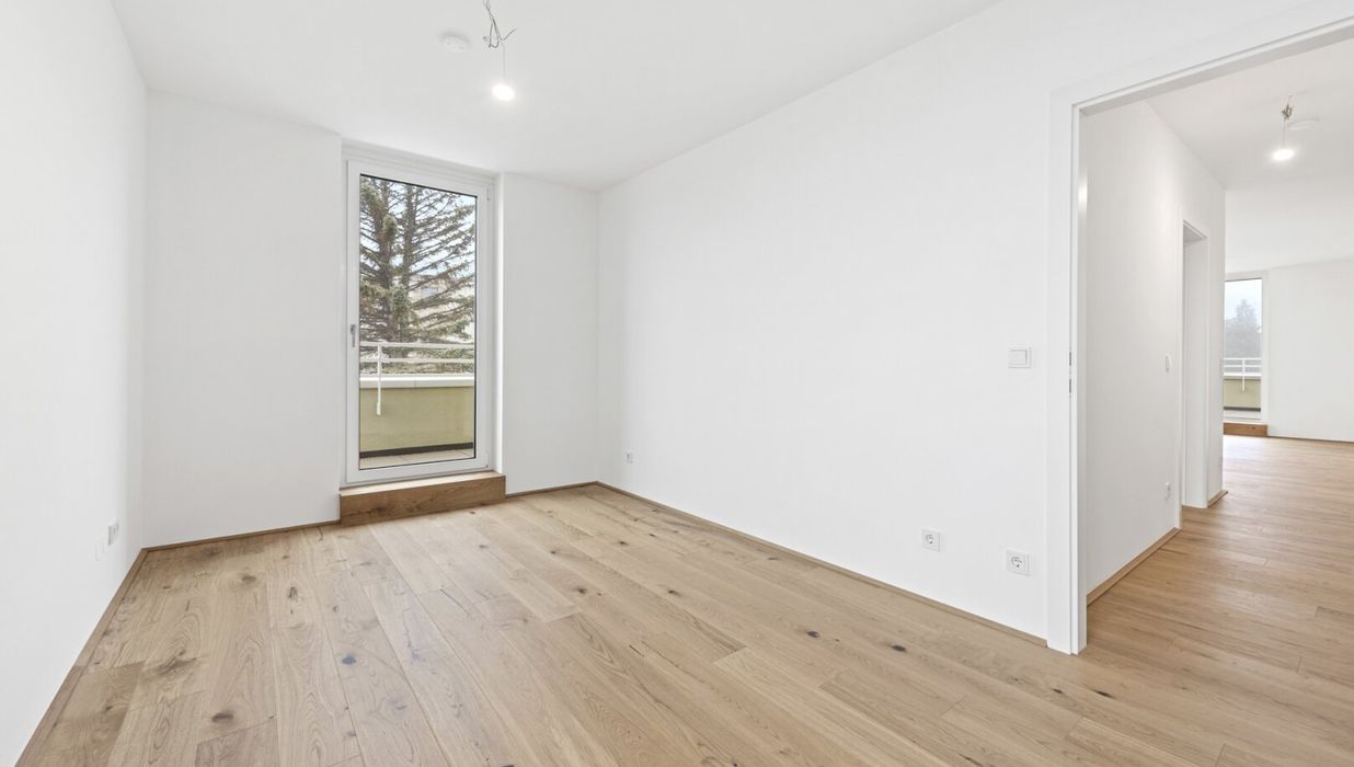 Fahrradabstellplätze, Kinderwagenraum, Spielplatz sowie eine Tiefgarage vervollständigen das Angebot des durchdachten, modernen und nachhaltigen Projekts. Bei 2-Zimmer-Wohnungen ist ein Tiefgaragenplatz (ab € 20.000,–) verpflichtend zusätzlich zu erwerben. Bei 3- und 4-Zimmer-Wohnungen gibt es zwei Stellplätze zum vergünstigten Paketpreis (ab € 28.000,–).