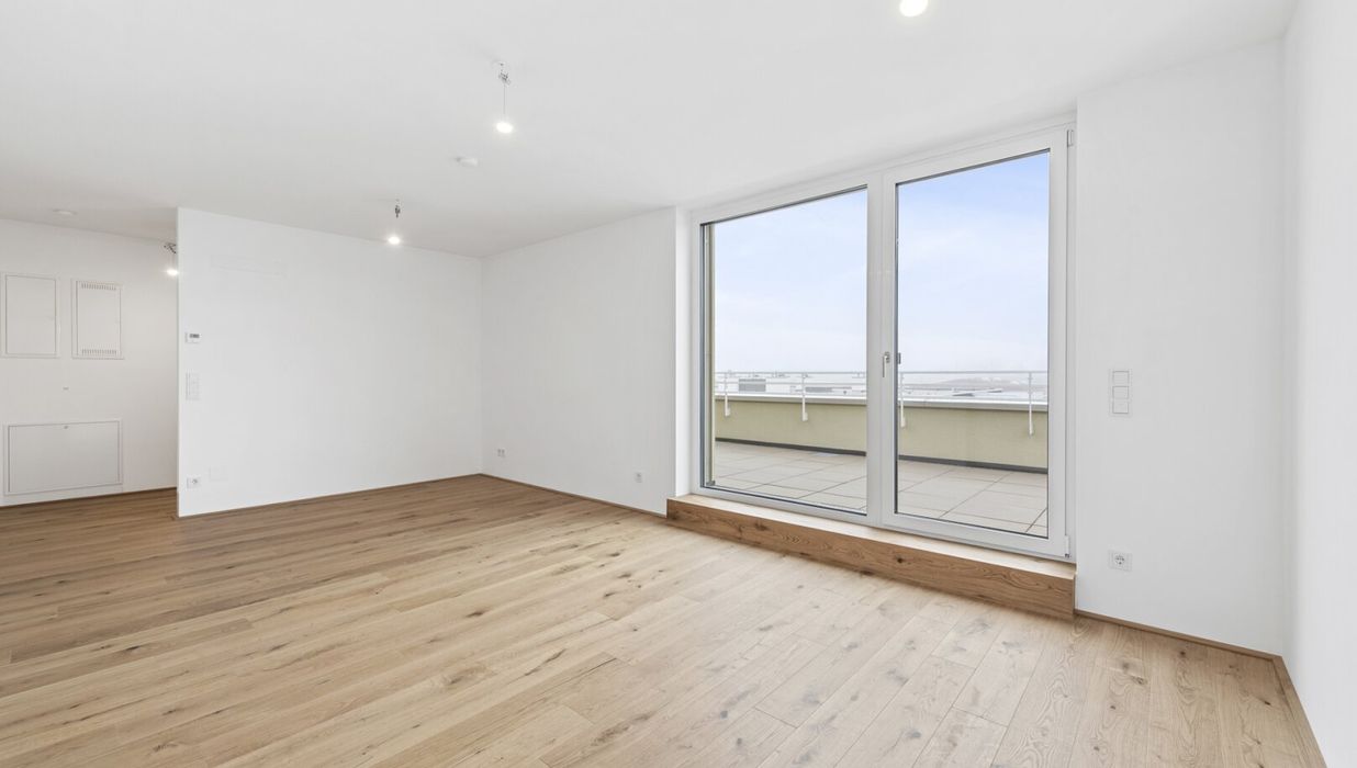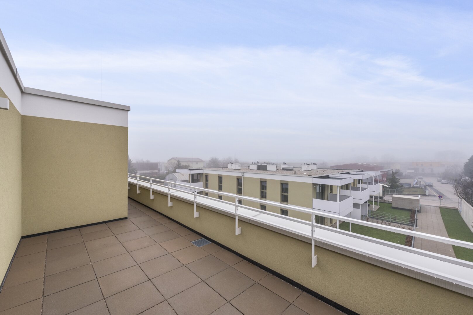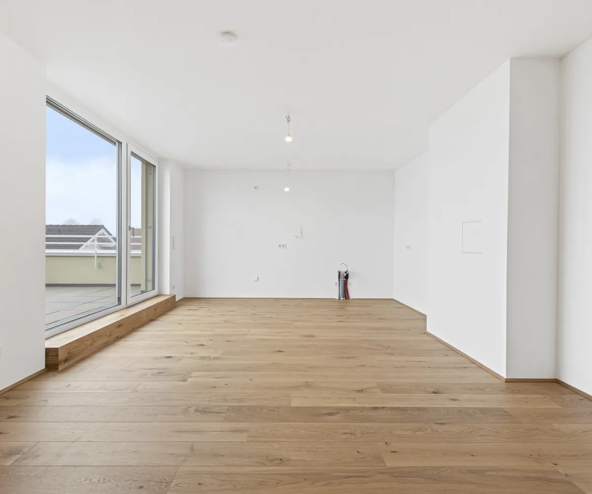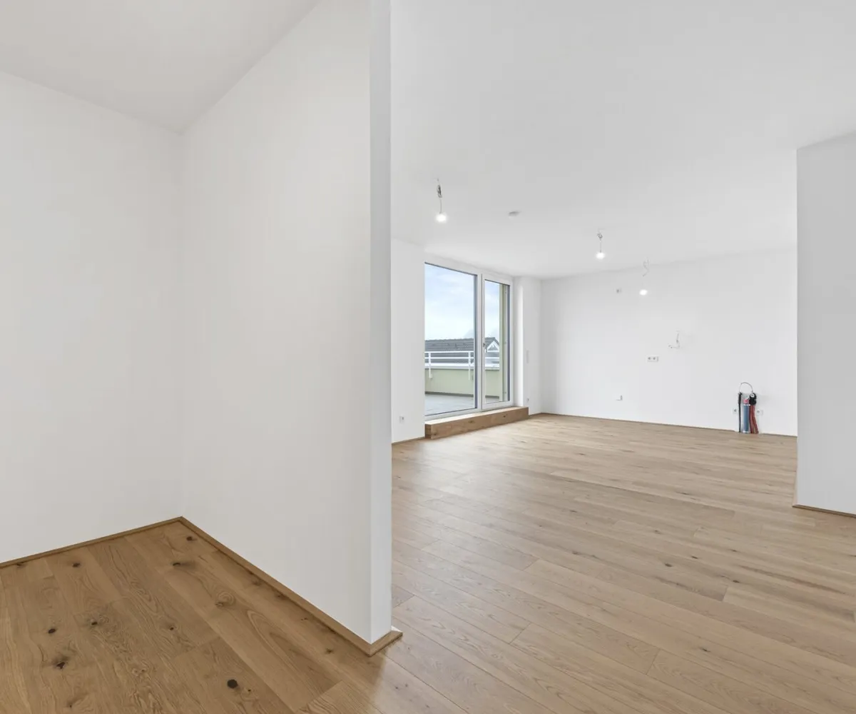 Diese wunderschön nach Süden ausgerichtete und damit lichtdurchflutete 4-Zimmer-Wohnung mit zwei Bädern ist im 2. Obergeschoß gelegen und bietet eine Wohnfläche von ca. 91,01 m² sowie eine Terrasse mit ca. 26,69 m². Diese ist aus Wohn- und Schlafräumen direkt begehbar. In der Wohnung selbst also auch auf der Terrasse lässt sich das südliche Klima Bad Vöslaus zu jeder Jahreszeit bestens genießen – mit tollem Fernblick.