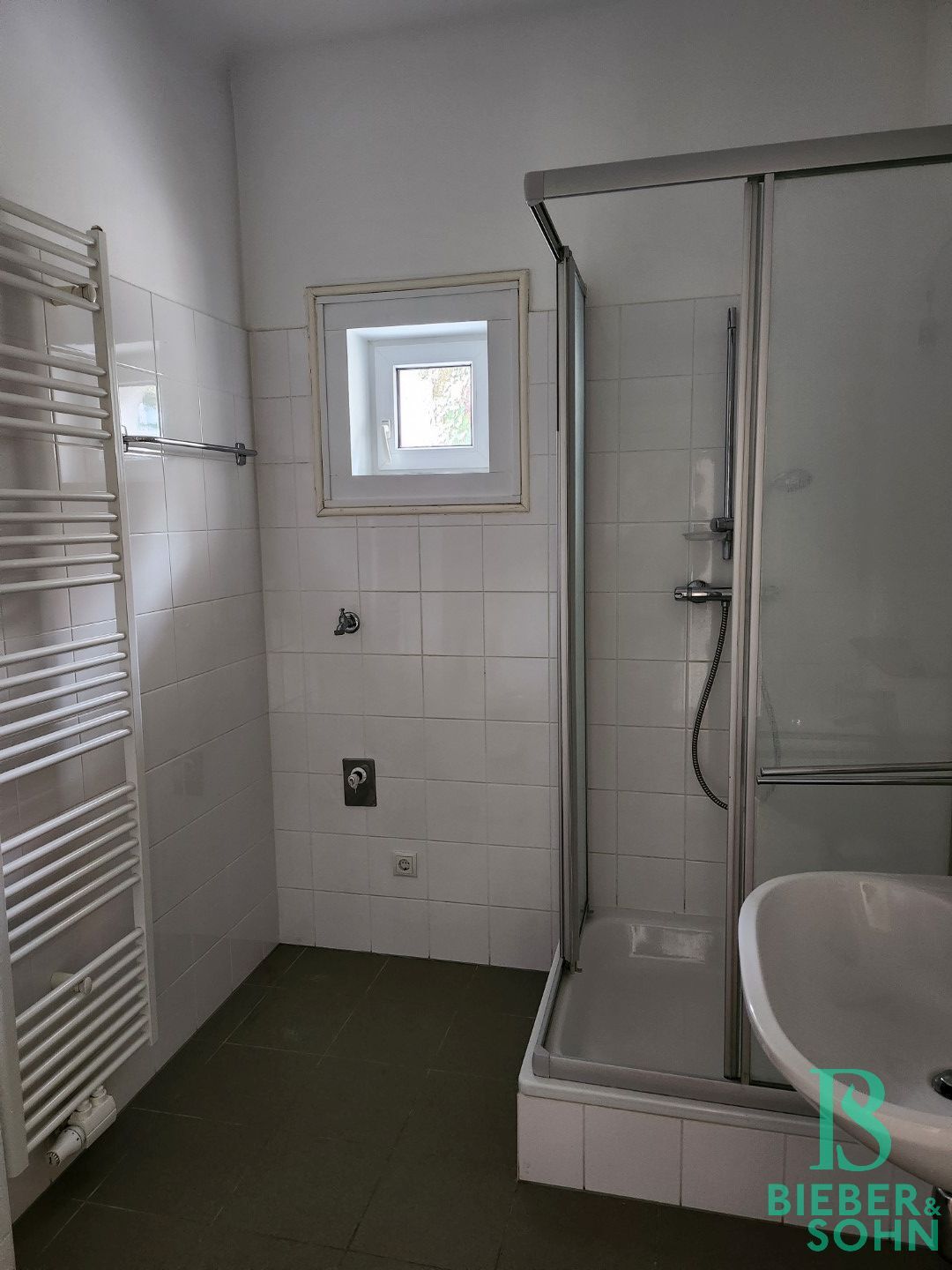 Ein Vorraum, ein Bad mit Dusche und WC, eine Küche mit Wohnbereich und ein großes Zimmer mit Ausgang auf die ruhige ca. 6,5m² West Terrasse, bietet diese Wohnung an.