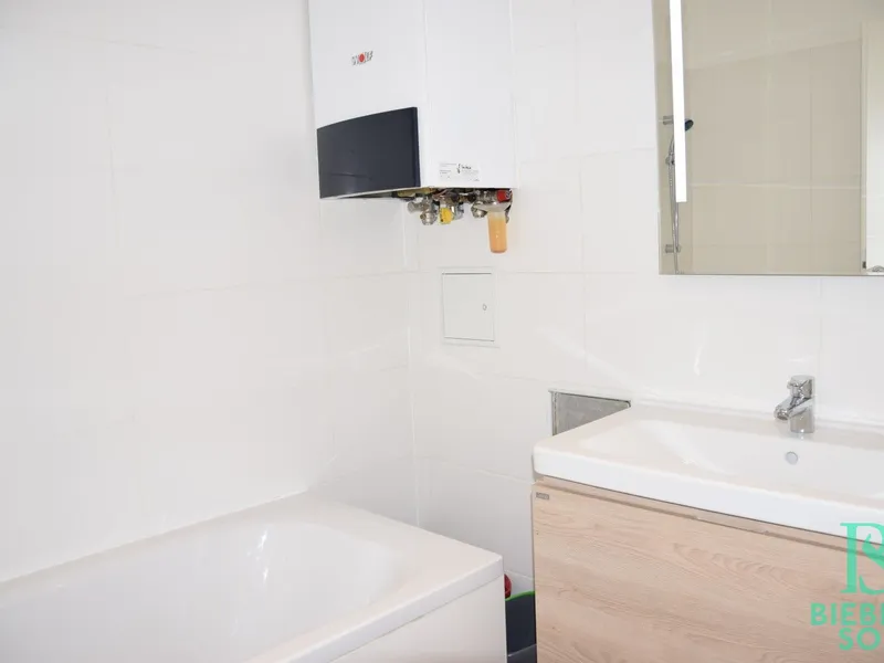Die Ausstattung umfaßt hochwertige Laminatböden, Fliesen in den sanitären Anlagen, 3-fach-Isolierglasfenster mit elektrischen Außenrollos, Kabelanschluß, Gegensprechanlage. Die Beheizung und Warmwasseraufbereitung erfolgt über eine Gasetagenheizung, die Wärmeabgabe über Fußbodenheizung.