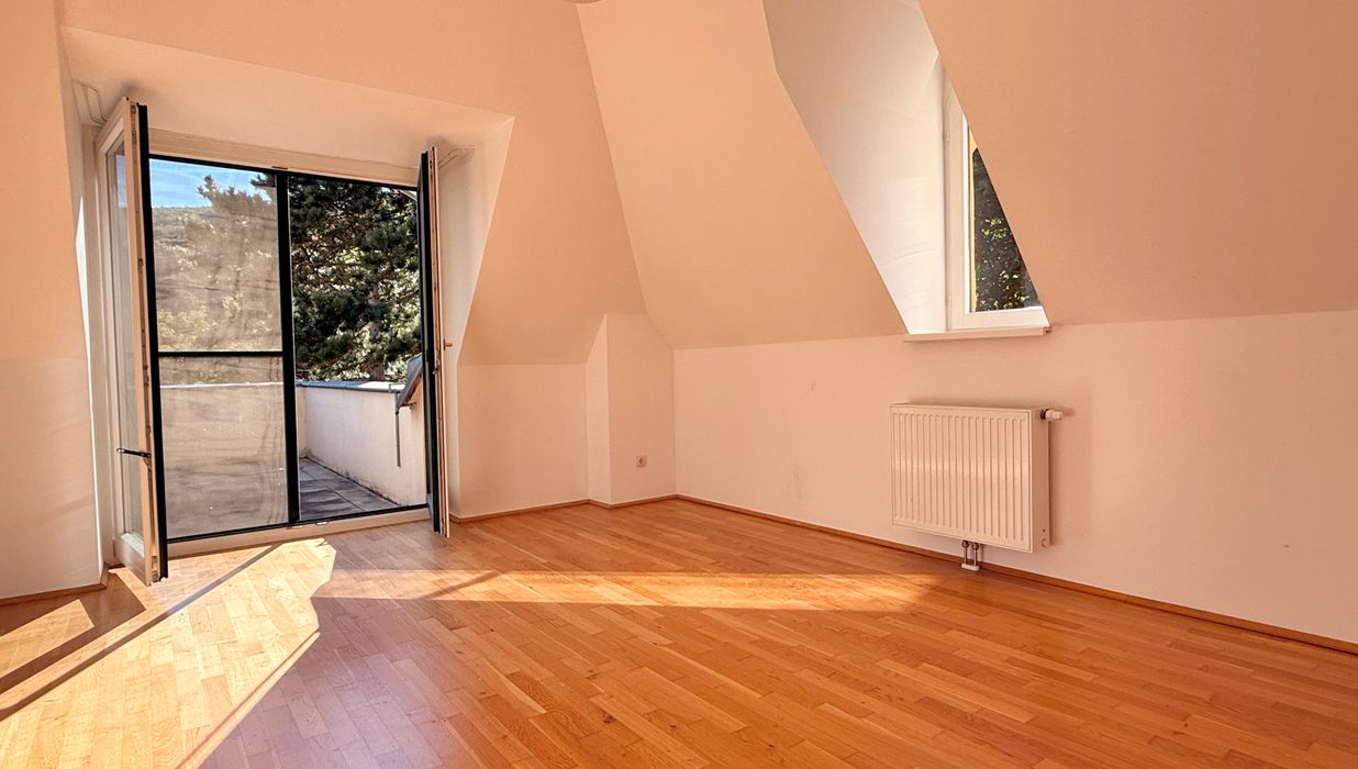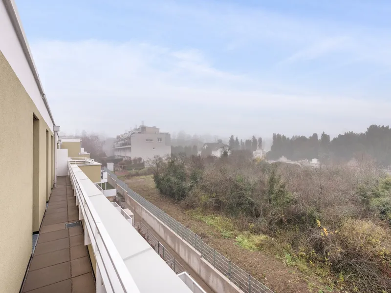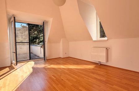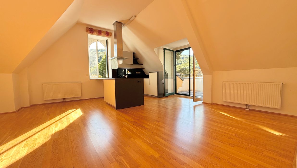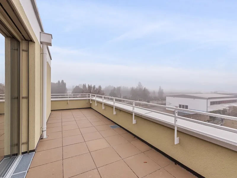 Mit einer Wohnnutzfläche von ca. 100,09 m² Wohnfläche und einer Dachterrasse mit ca. 15 m² bietet diese Dachgeschoss-Wohnung nicht nur viel Platz, sondern auch einen beeindruckenden Blick in die umliegende Natur.