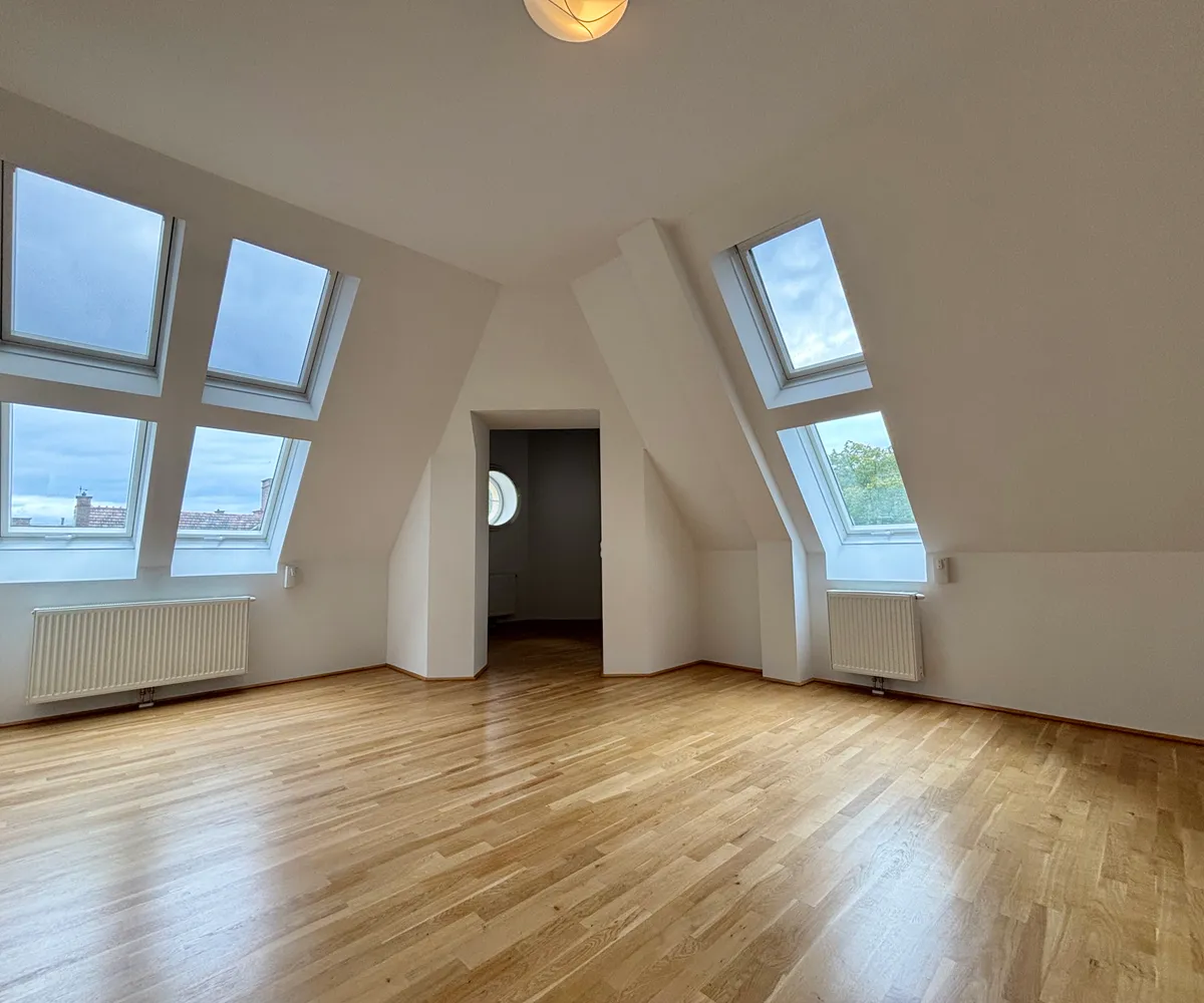 Genießen Sie das besondere Flair großzügiger Wohnbereiche, lichtdurchfluteter Räumlichkeiten und authentischer Details wie Holzkastenfenstern im eleganten Wiener Altbaustil. Der offen gestaltete Wohn-/Essbereich mit rund 36 m², eine hochwertige Einbauküche, das Turm-Zimmer mit herrlichem Fern- und Grünblick sowie das ruhige Schlafzimmer bieten Ihren Wohnträumen den perfekten Rahmen. Komfortable Features wie ein moderner Personenlift, barrierefreier Zugang, Badezimmer mit Dusche und separates WC, Kellerabteil, Fahrradraum und ein markierter Parkplatz machen das Wohnen rundum angenehm.
