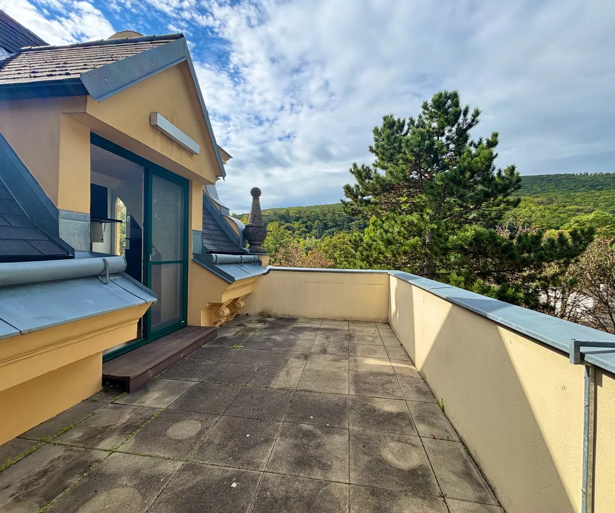 In einer generalsanierten Altbauvilla aus der Jahrhundertwende, inmitten der begehrten Helenenstraße in Baden, steht diese Dachgeschosswohnung mit ca. 100 m² Wohnfläche und ca. 15 m² Terrasse zum Verkauf. Die Lage verbindet historisches Ambiente, Villencharakter und unmittelbare Nähe zum Wienerwald.