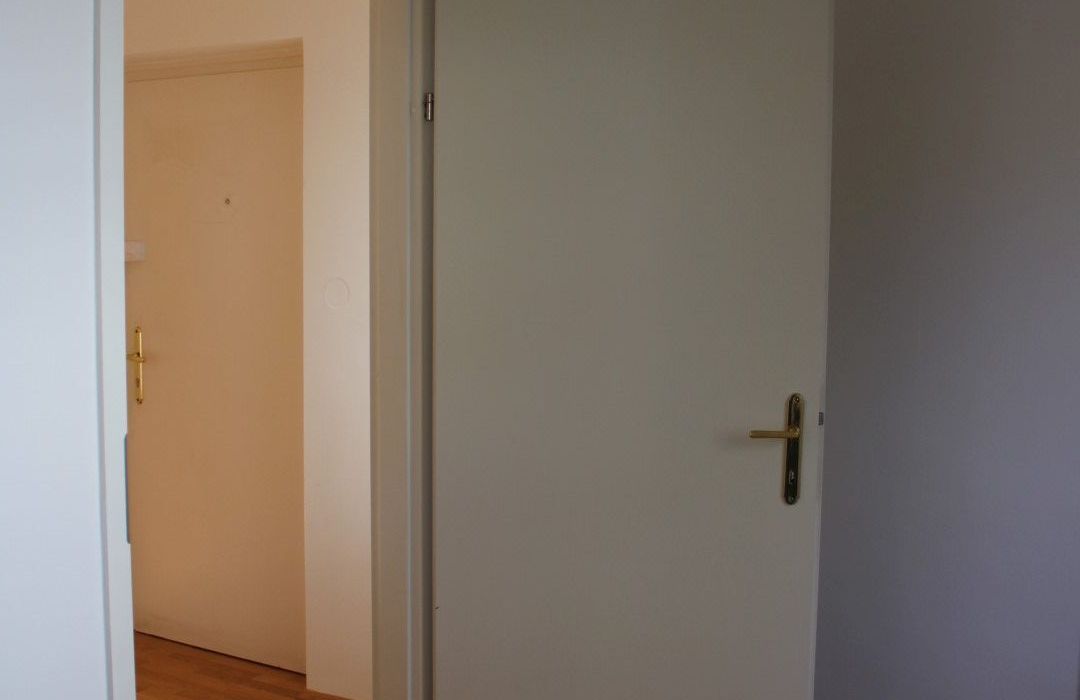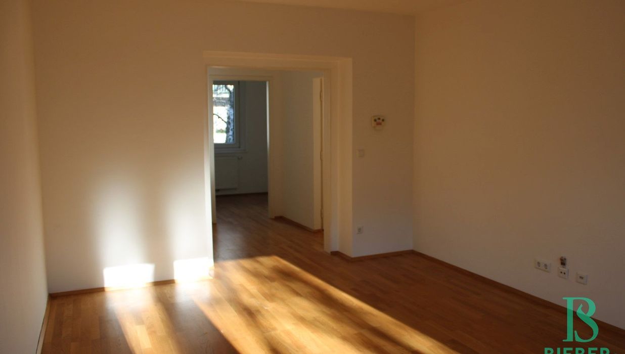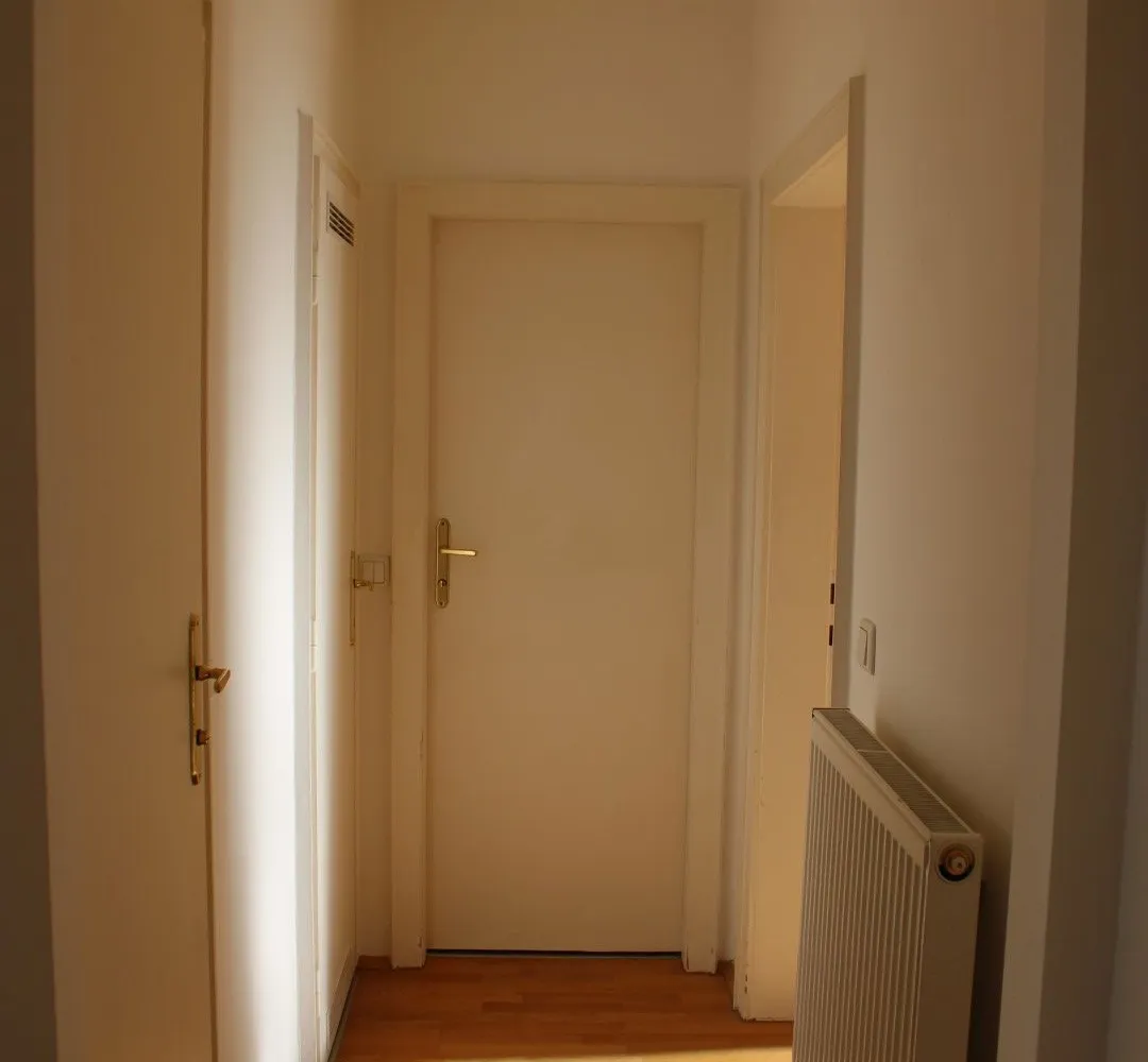 Ein Vorraum mit einem Duschbad mit Waschmaschinenanschluss, einem WC und einem Abstellraum, 2 große Zimmer und 1 kleines Durchgangszimmer, eine große Küche, ein sonniger Süd Balkon, ein Kellerabteil und ein allgemeiner Garten bietet diese Wohnung an.