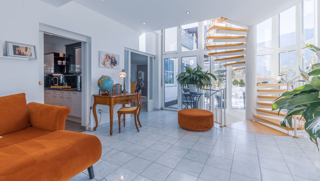 Das ruhig gelegene Apartment besticht durch seine sehr gute und vielfältige Ausstattung. Die Kombination aus Wohnen, Luxus-Sauna-Bereich, West- und Ostterrasse, großem Garten mit Pool und den großzügigen Stellmöglichkeiten für die Fahrzeuge finden Sie in dieser geballtem Form selten.